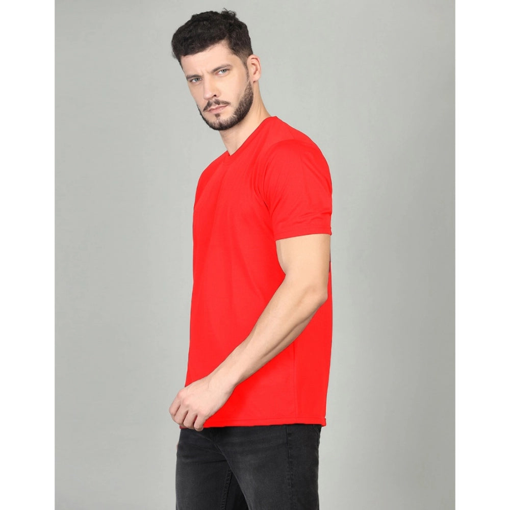 Amfyn Men's Casual Half Sleeve Solid Cotton Blended Round Neck T-shirt (Red)