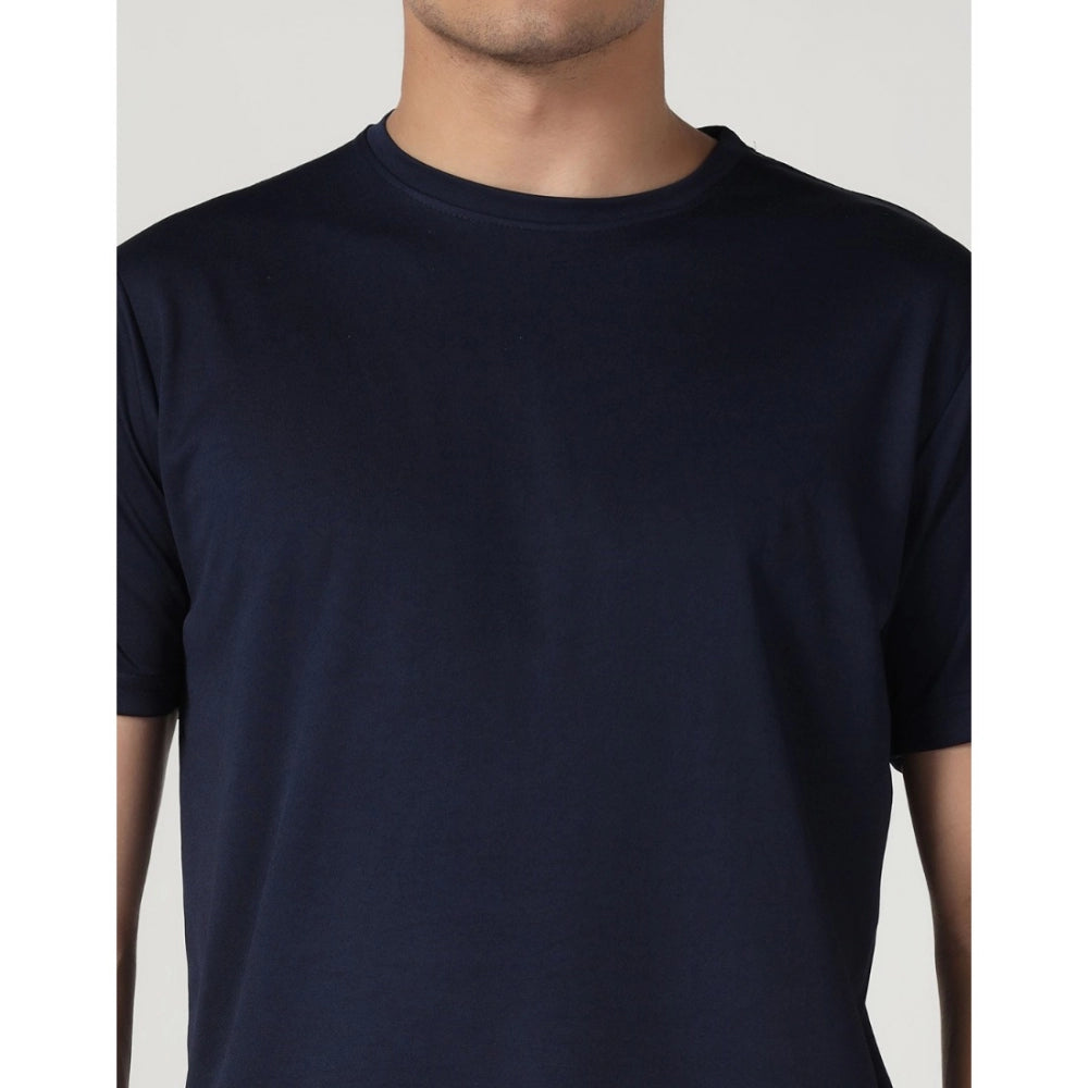 Amfyn Men's Casual Half Sleeve Solid Polyester Round Neck T-shirt (Navy)