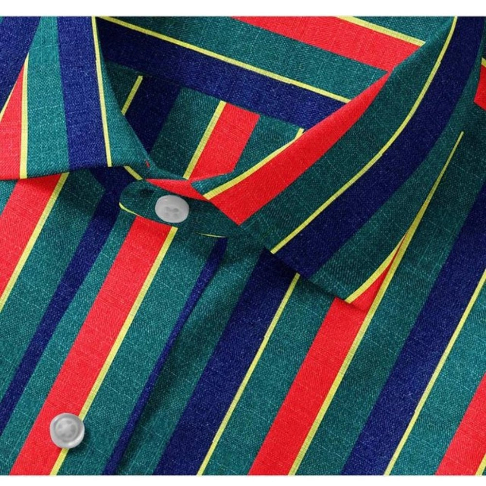 Amfyn Men's Cotton Blended Striped Full Sleeve Shirt (Red-Green)