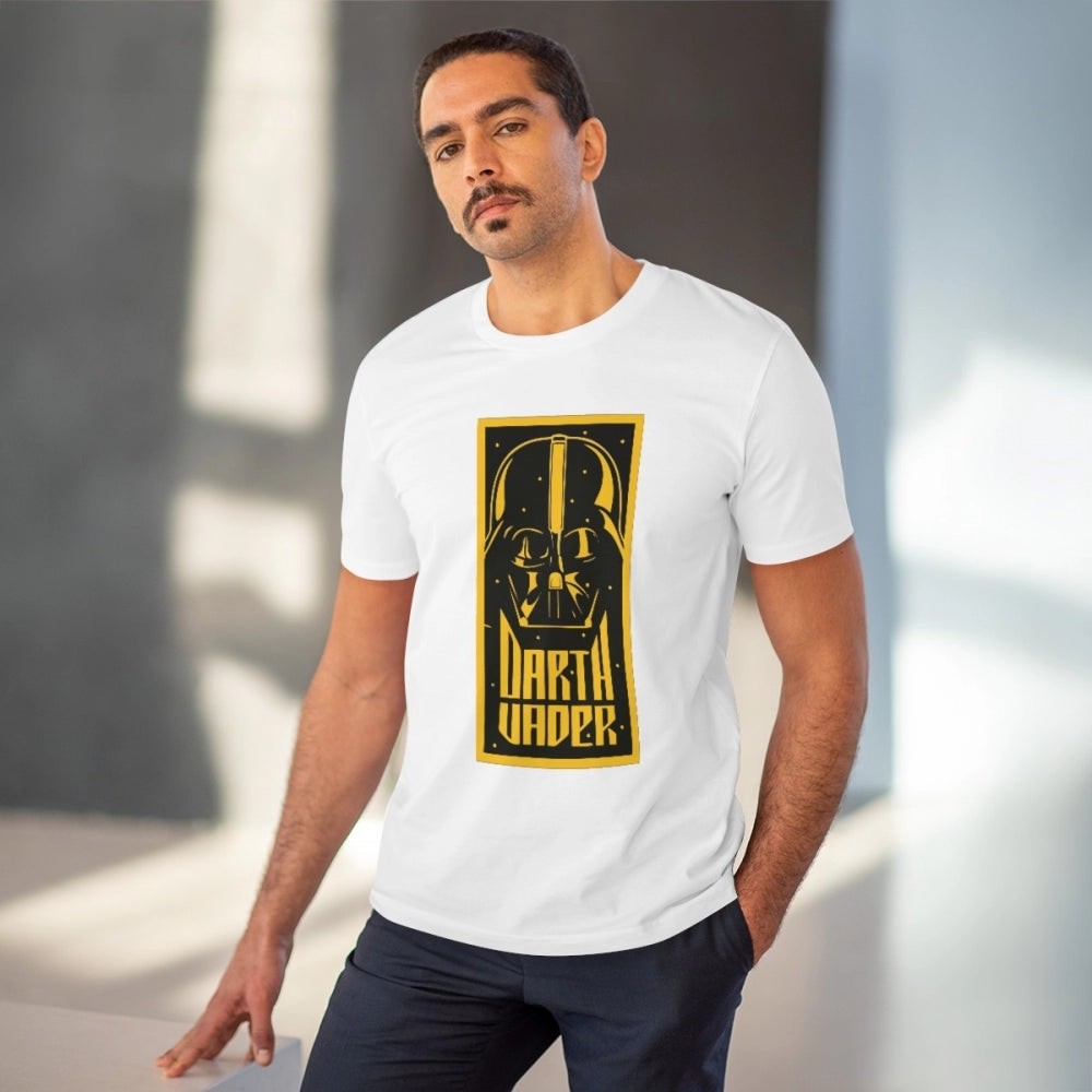 Amfyn Men's PC Cotton Darth Vader Printed T Shirt (Color: White, Thread Count: 180GSM)