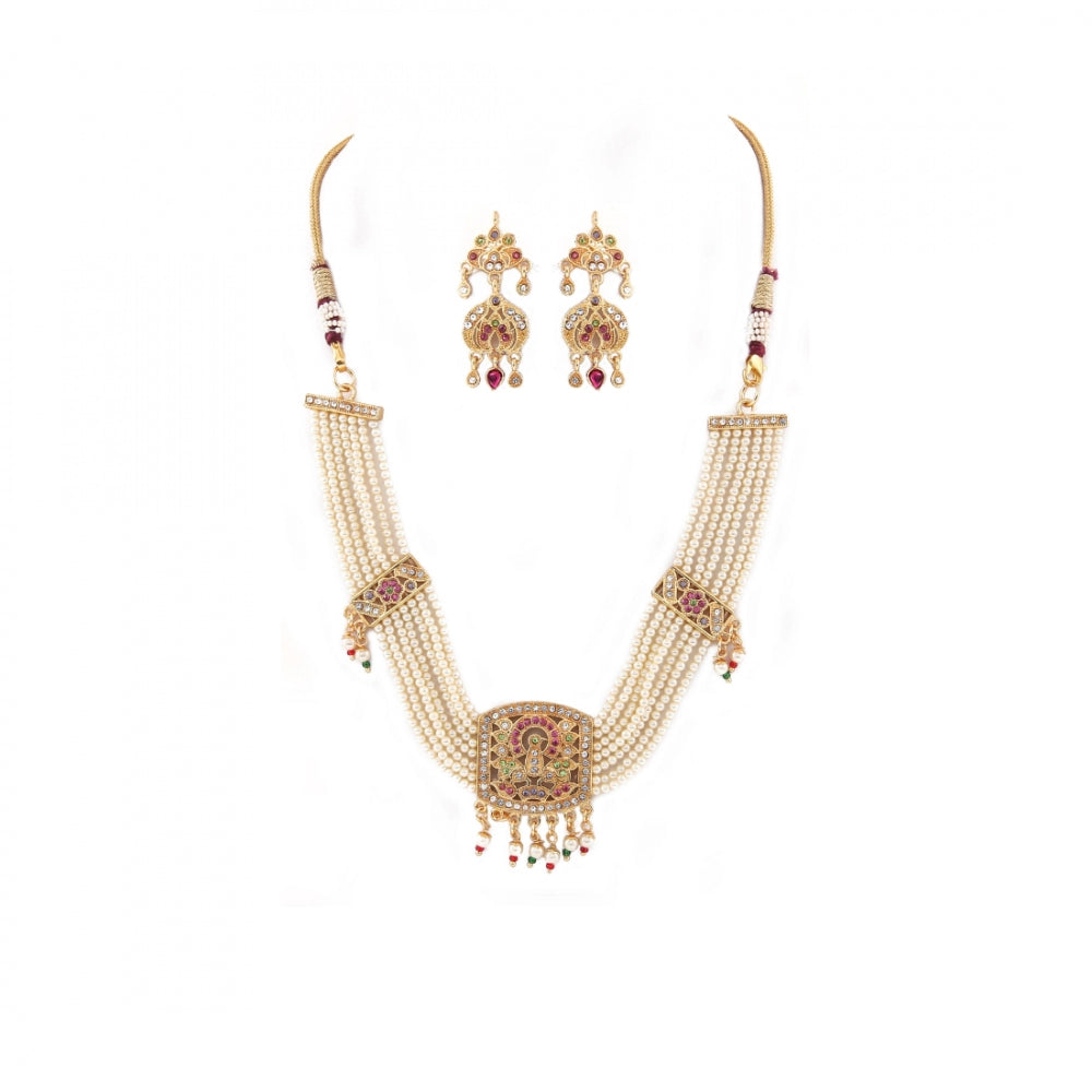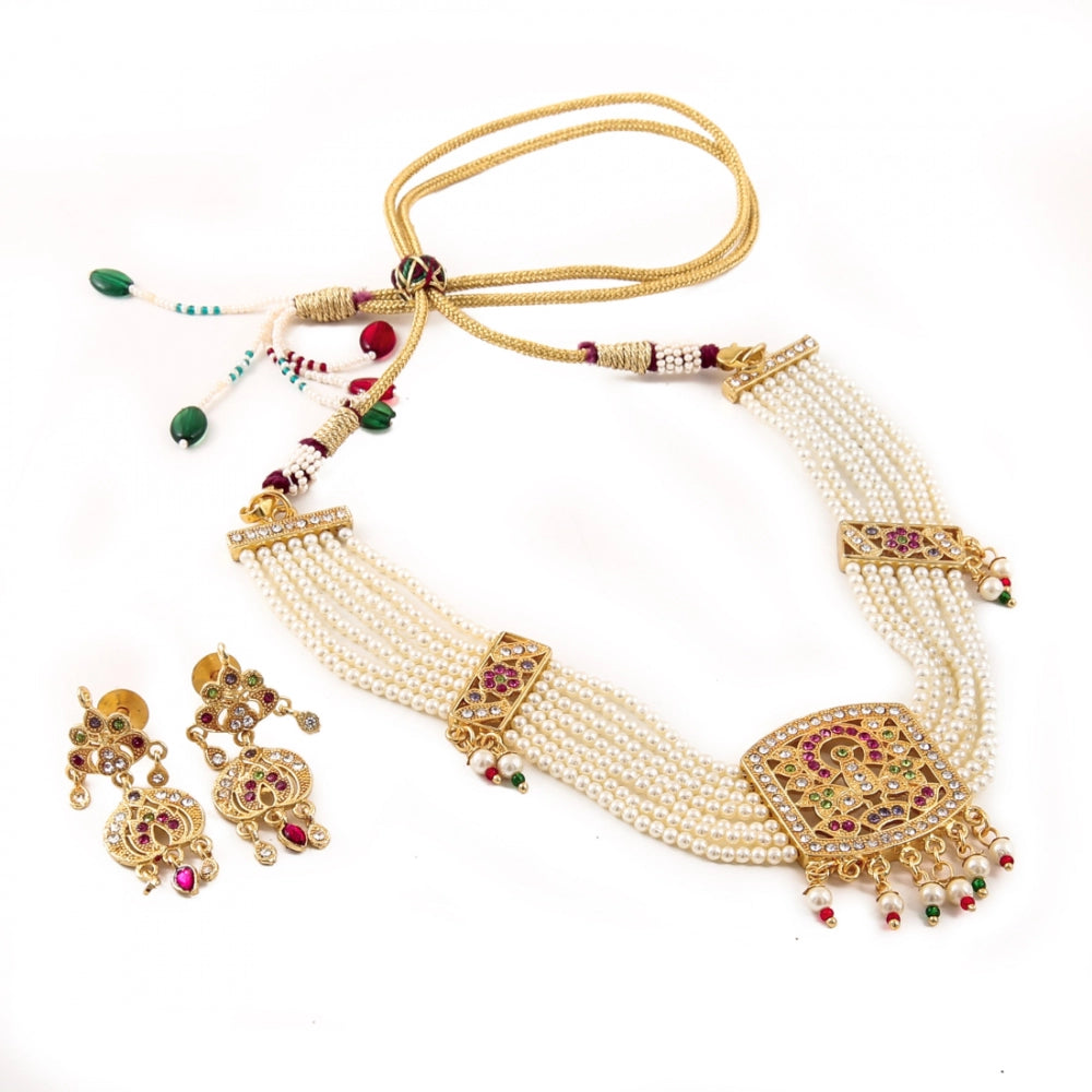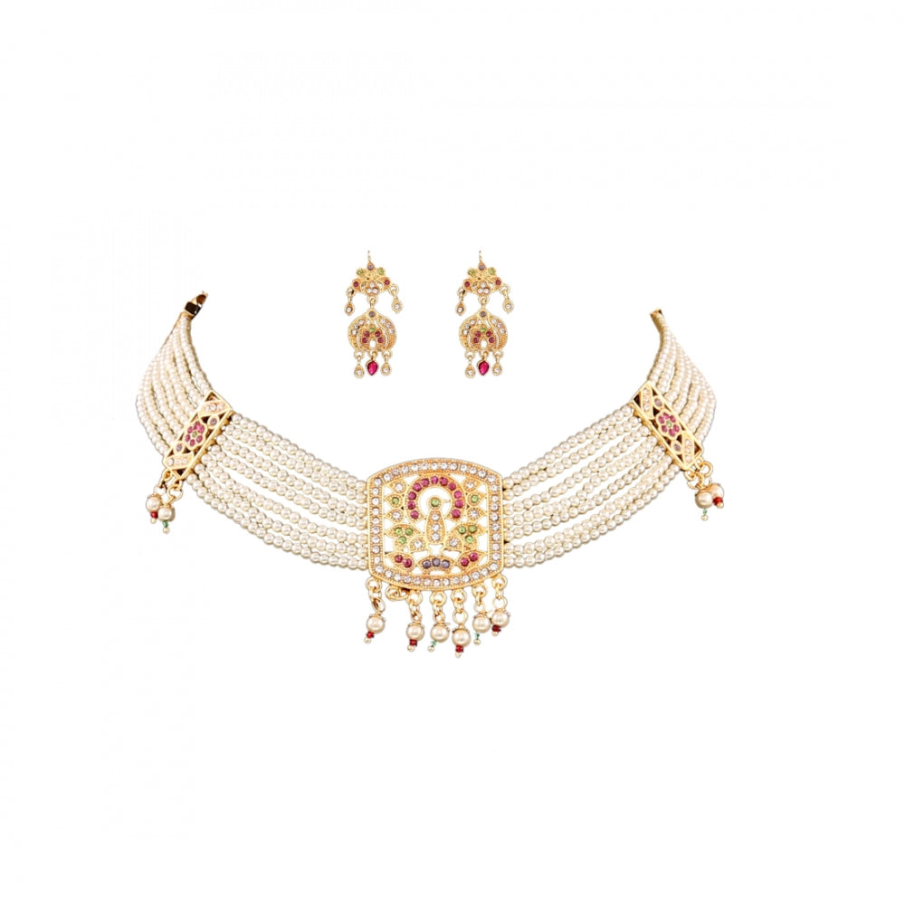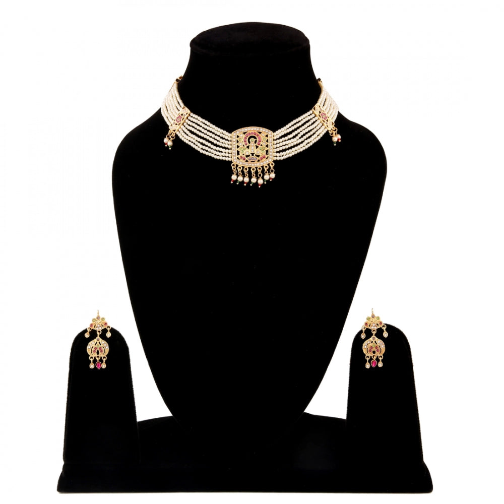 Off White Gold-Plated Jadau Choker Necklace Set with Earrings