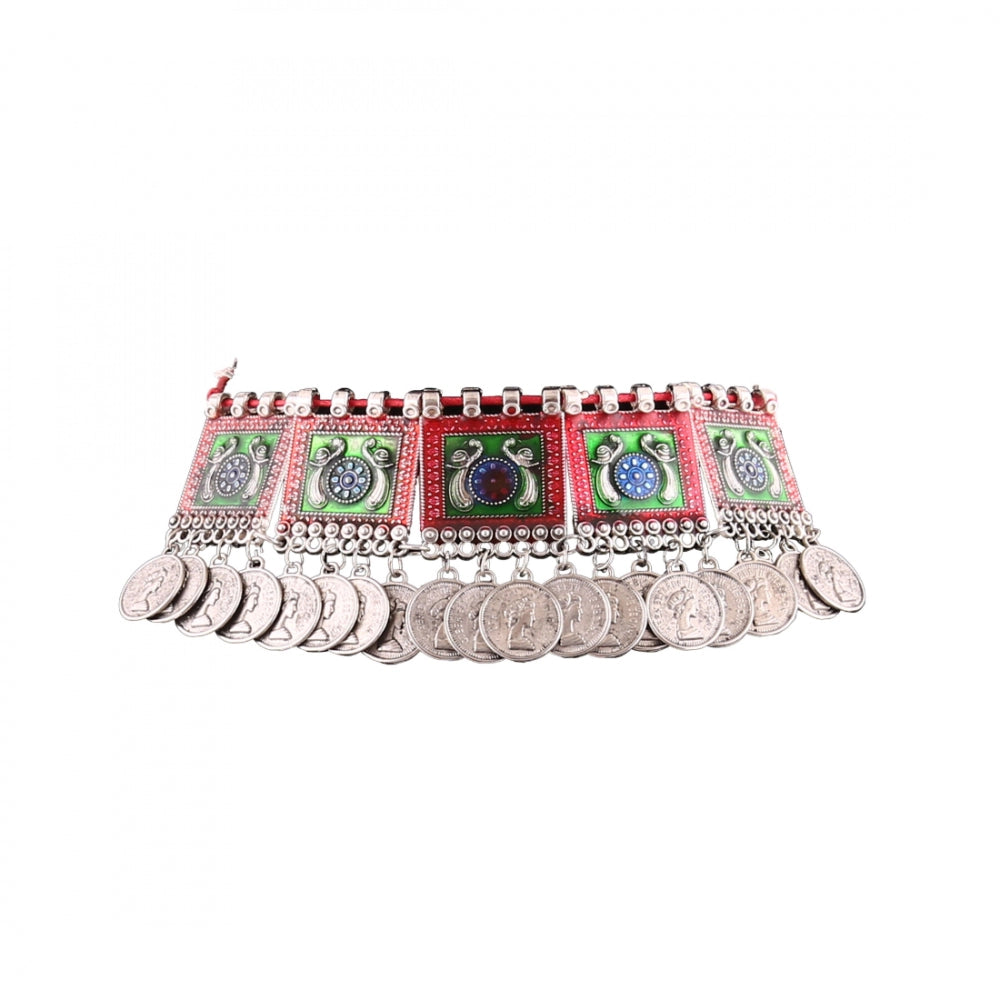 Oxidised Silver Plated Meena Work Choker Necklace,
