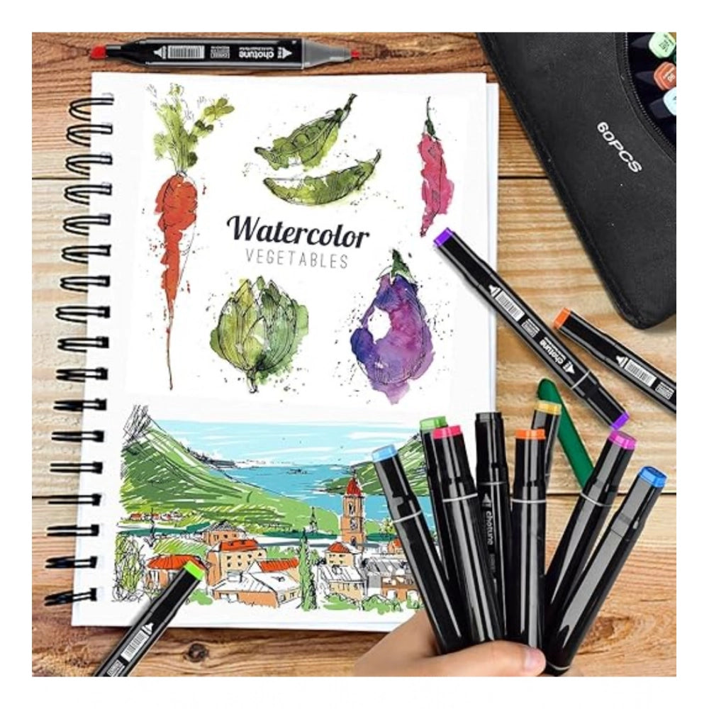 Amfyn Plastic 60Pcs Colors Art Markers Sketch Pen Dual Tip Artist Art Marker (Multicolor )