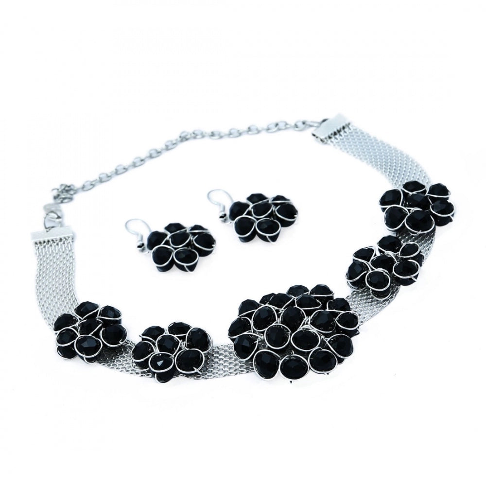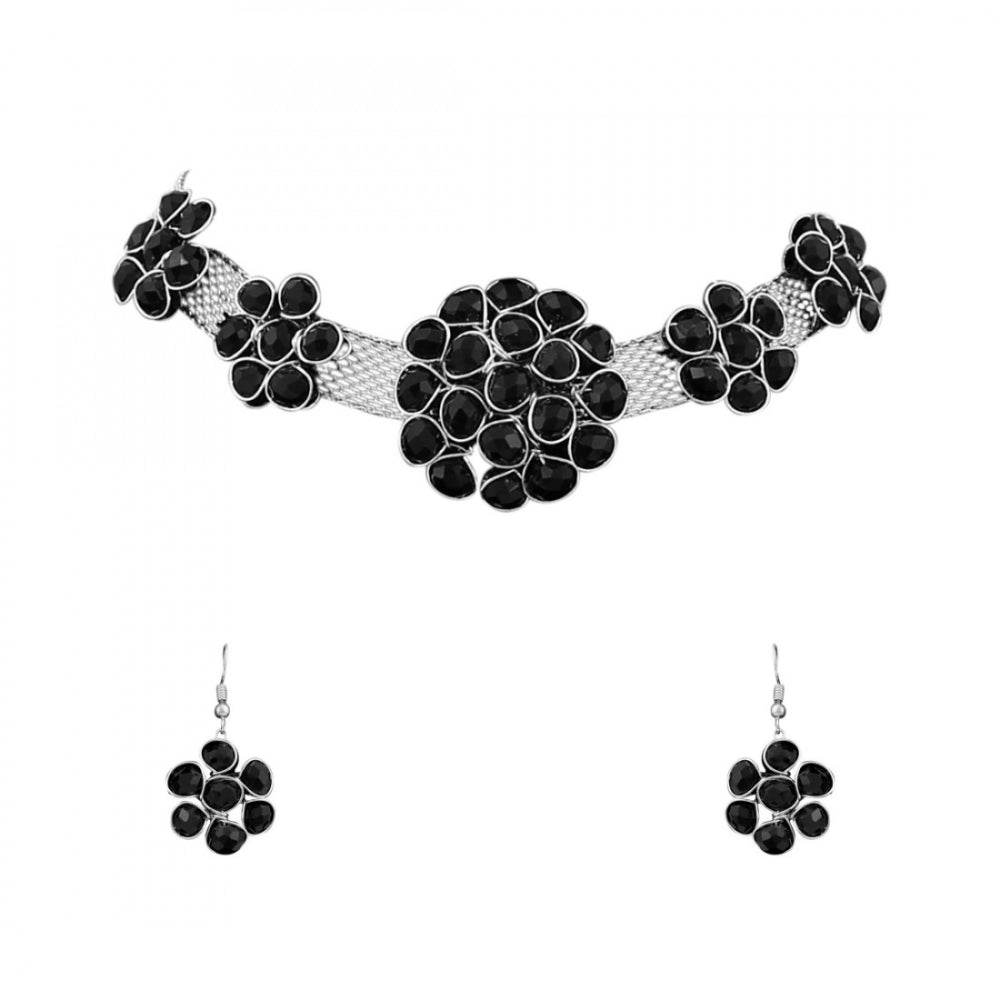 Fashion Stylish Pearl Beads Oxidised Silver Necklace Set For Women