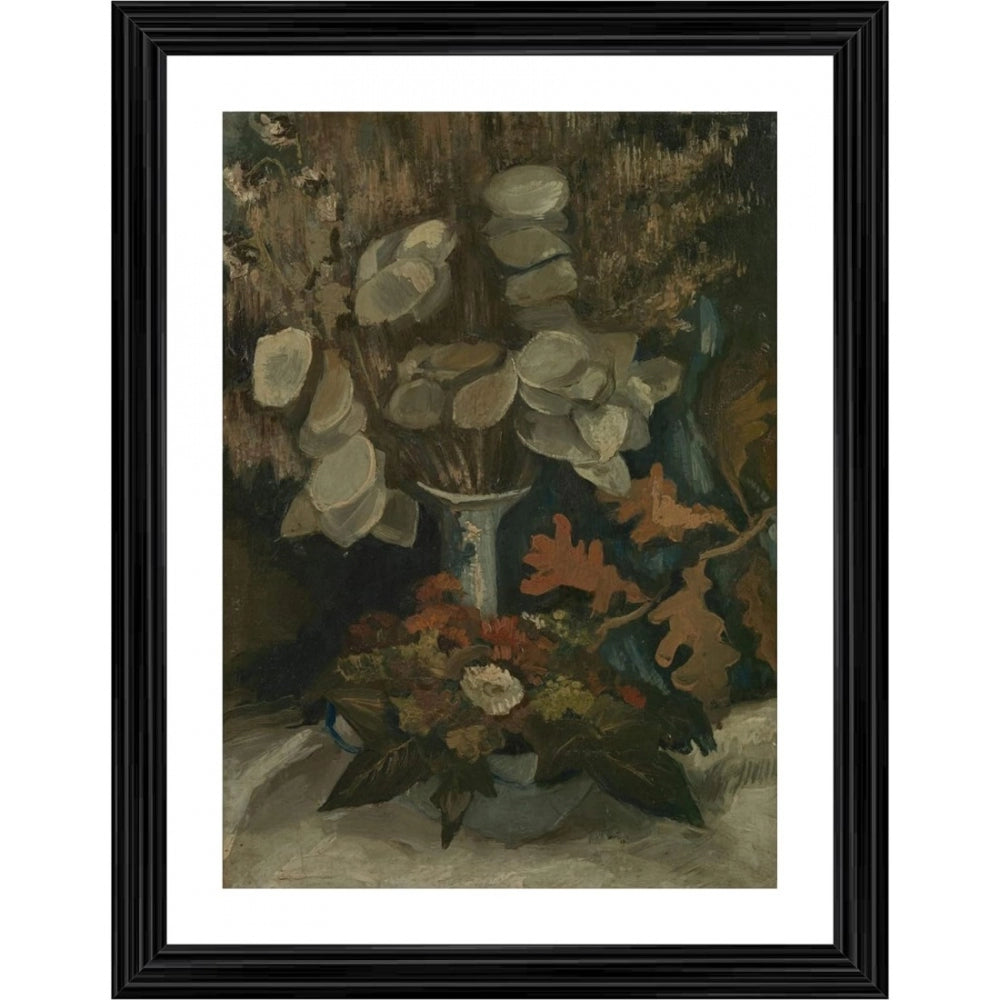 Amfyn Vase with Honesty 1884 Painting With Wood Photo Frame (Multicolor)