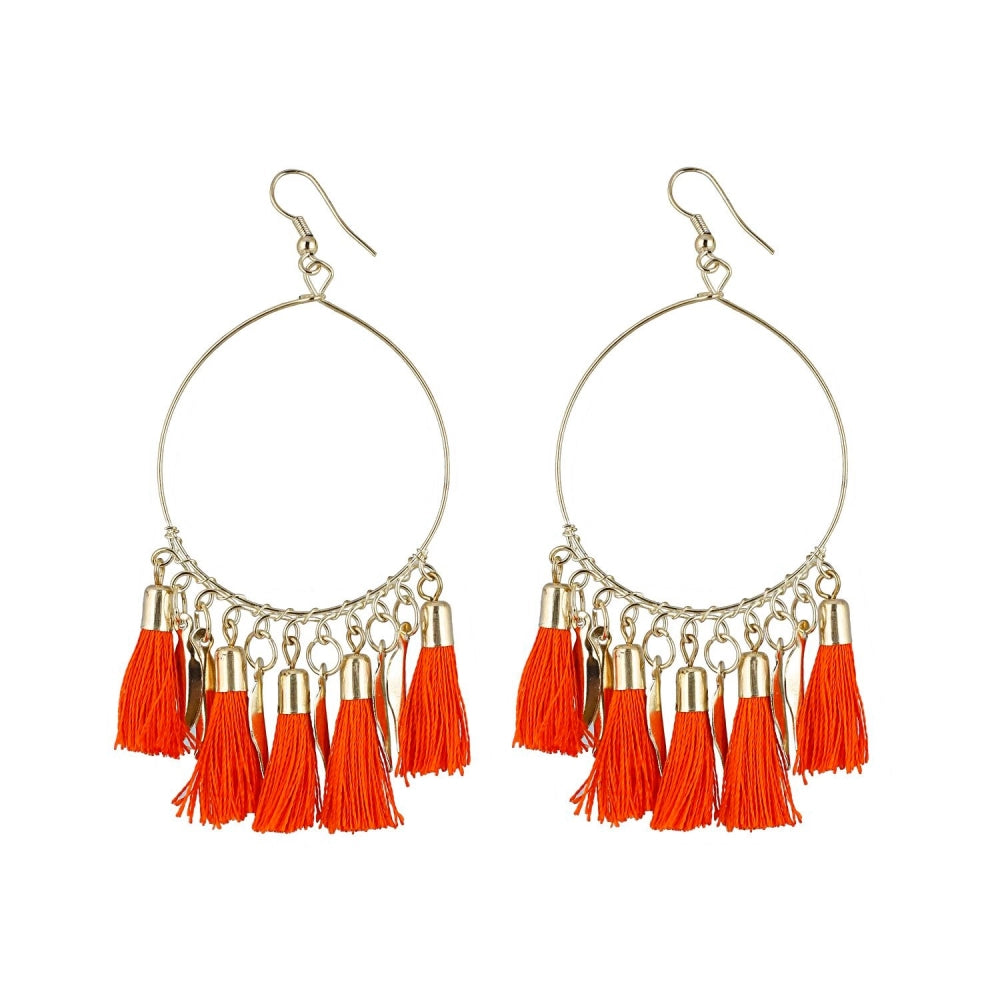 Fashion Women's Alloy Hook Dangler Hanging Tassel Earrings-Orange,