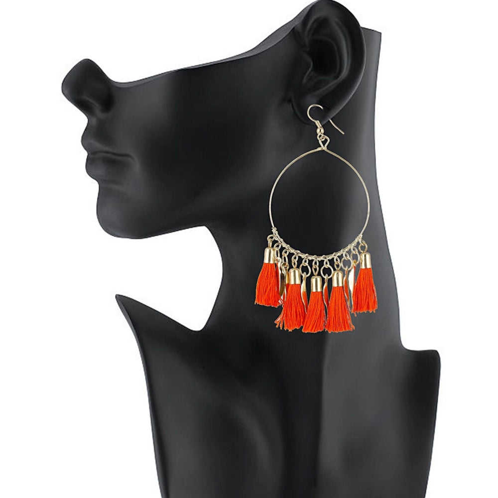 Fashion Women's Alloy Hook Dangler Hanging Tassel Earrings-Orange
