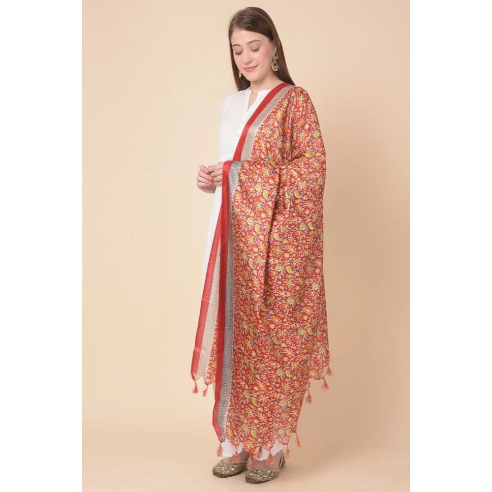 Amfyn Women's Art Silk Printed Dupatta (Red, Length: 2.25 to 2.50 Mtr)