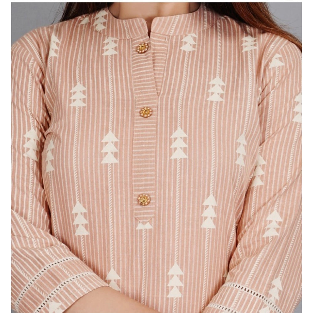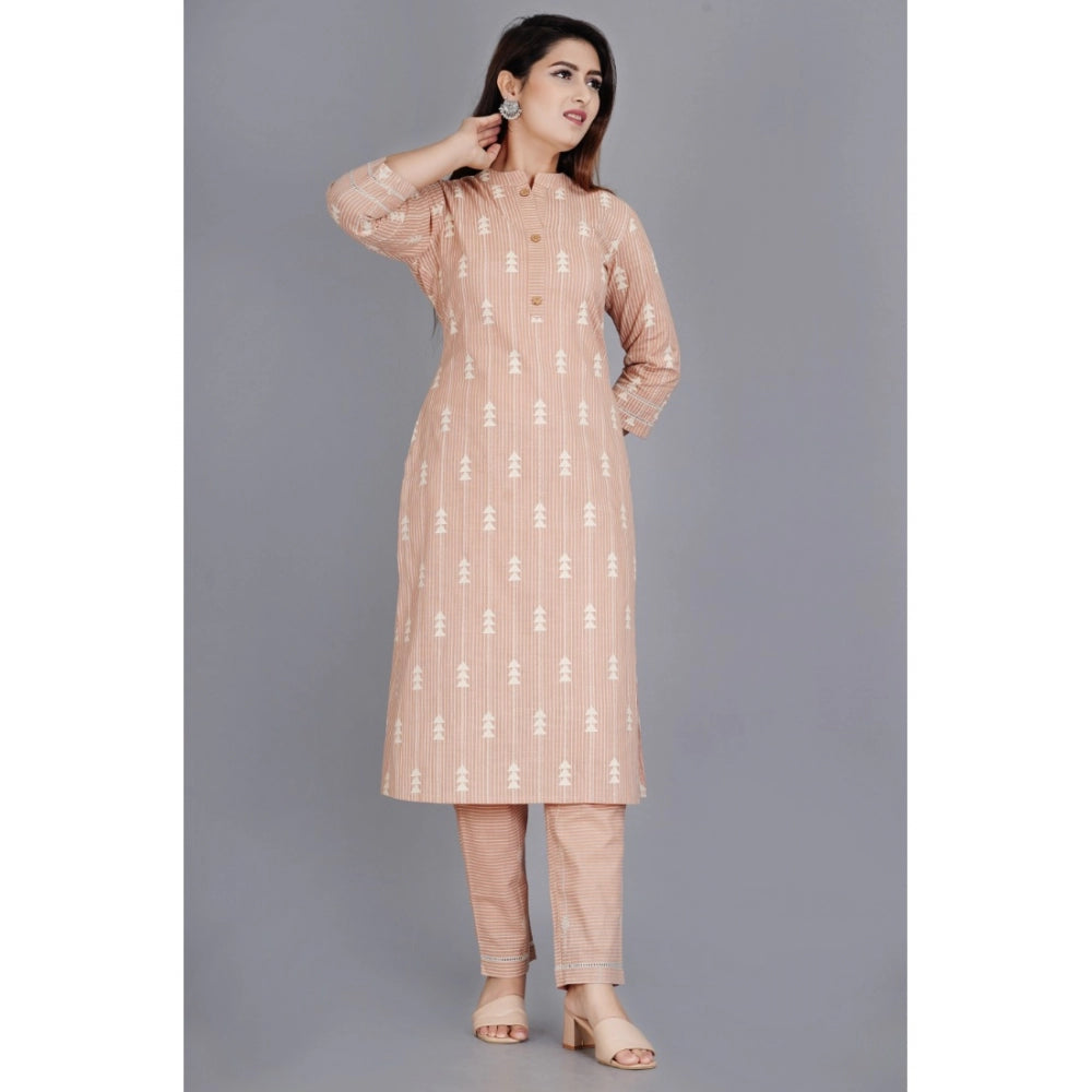 Amfyn Women's Casual 3/4 Sleeve Printed Rayon Kurti With Pant Set (Beige)