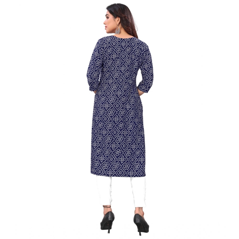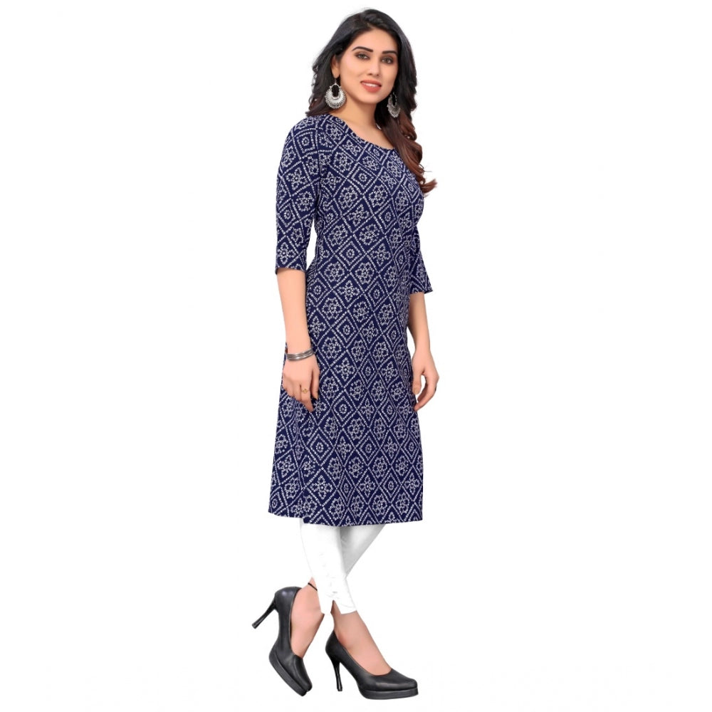 Amfyn Women's Casual 3/4th Sleeve Bandhani Printed Crepe Kurti (Navy Blue)