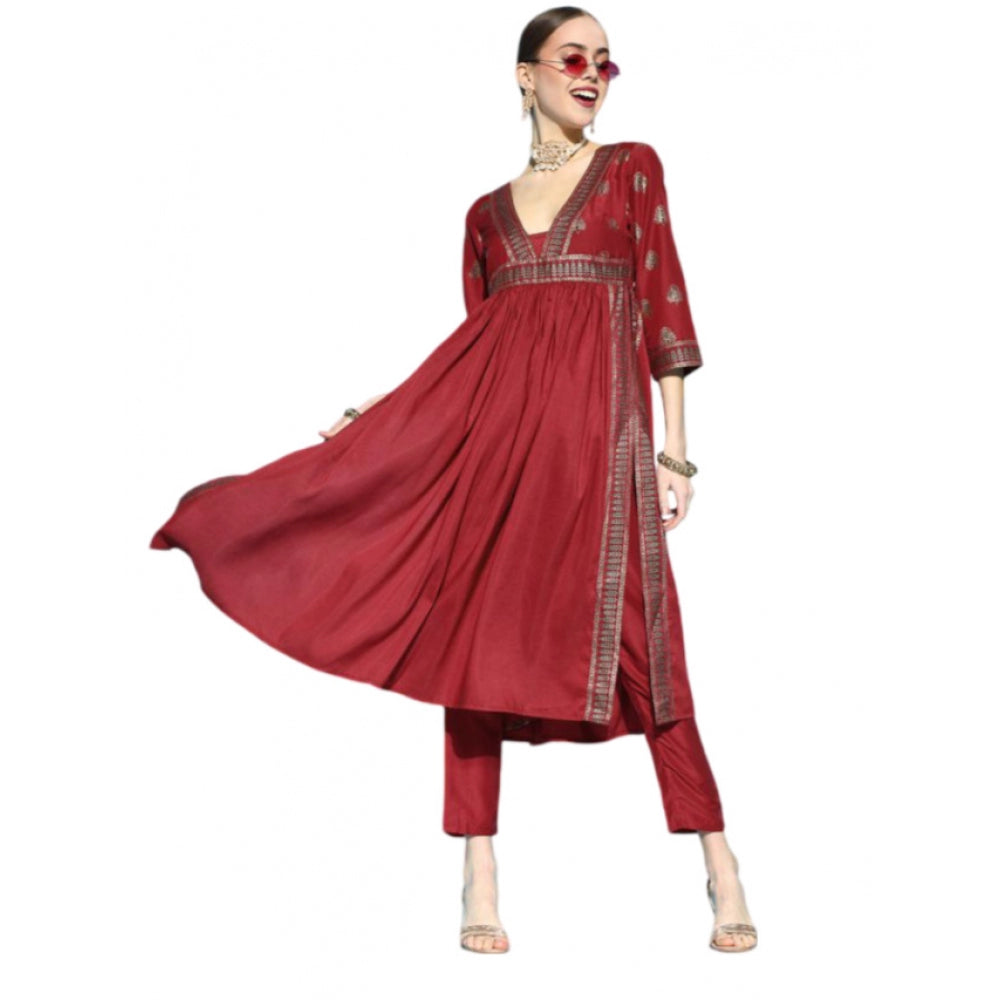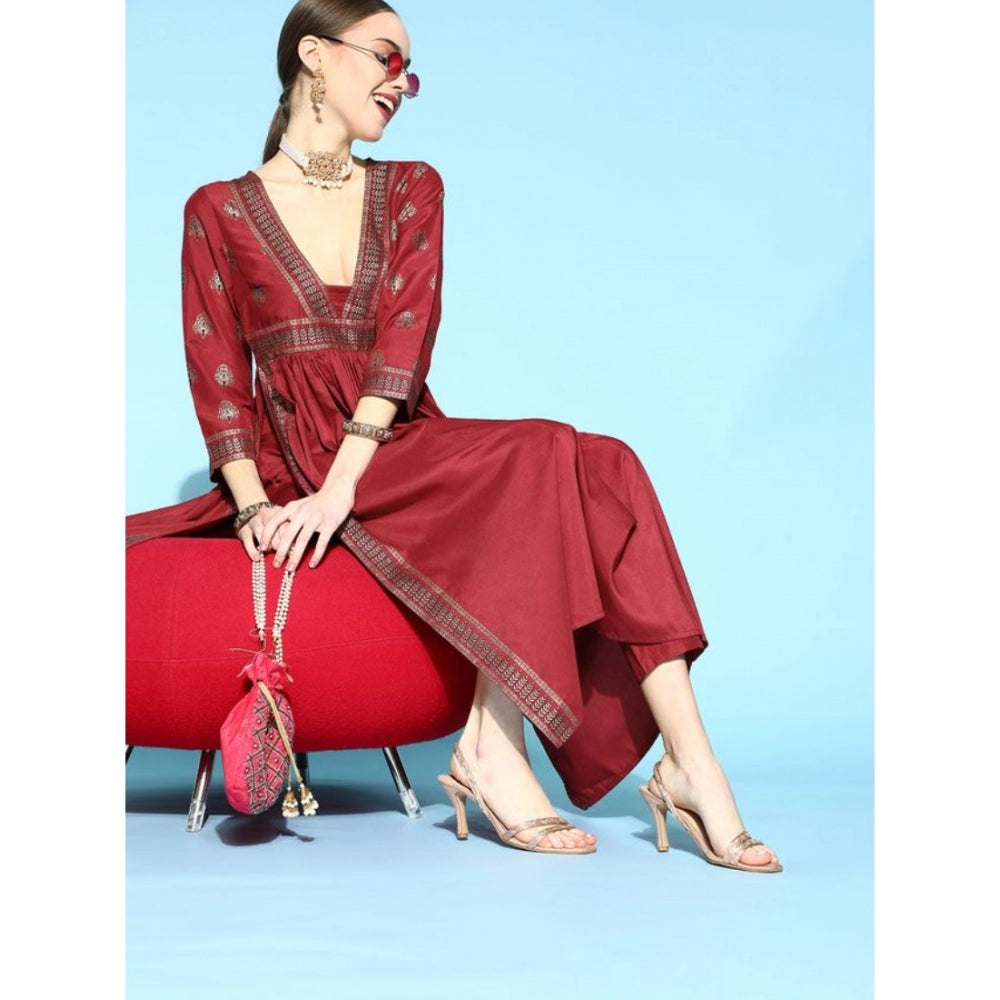 Amfyn Women's Casual 3-4Th Sleeve Floral Printed Chinon Kurti And Pant Set (Maroon)