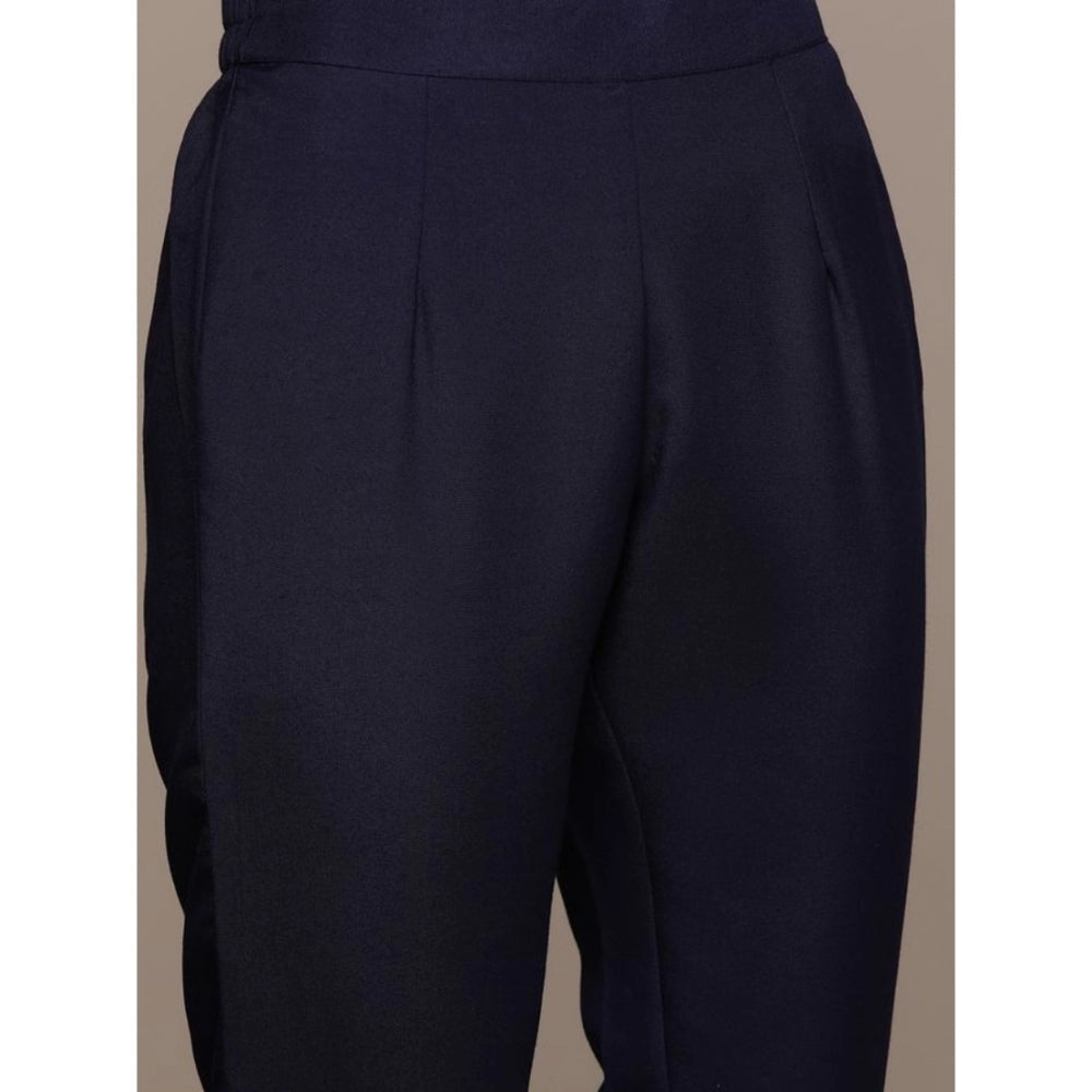 Amfyn Women's Casual 3-4Th Sleeve Floral Printed Rayon Kurti And Pant Set (Navy Blue)