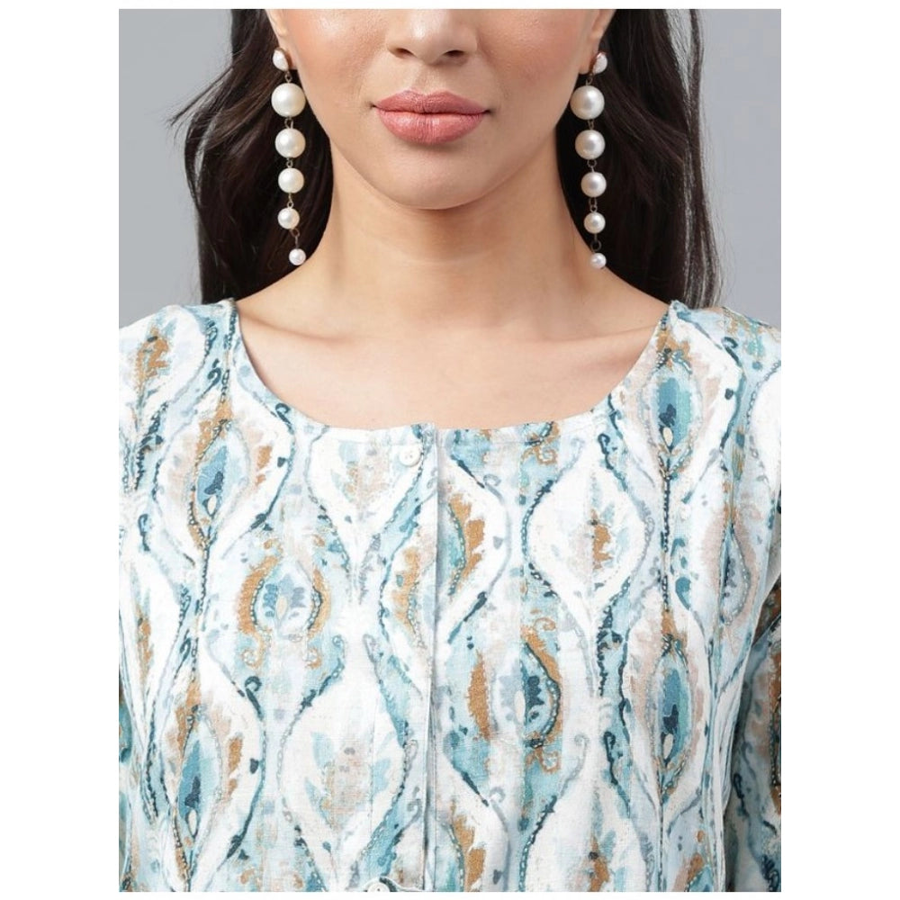 Women's Casual 3-4th Sleeve Printed Cotton Top