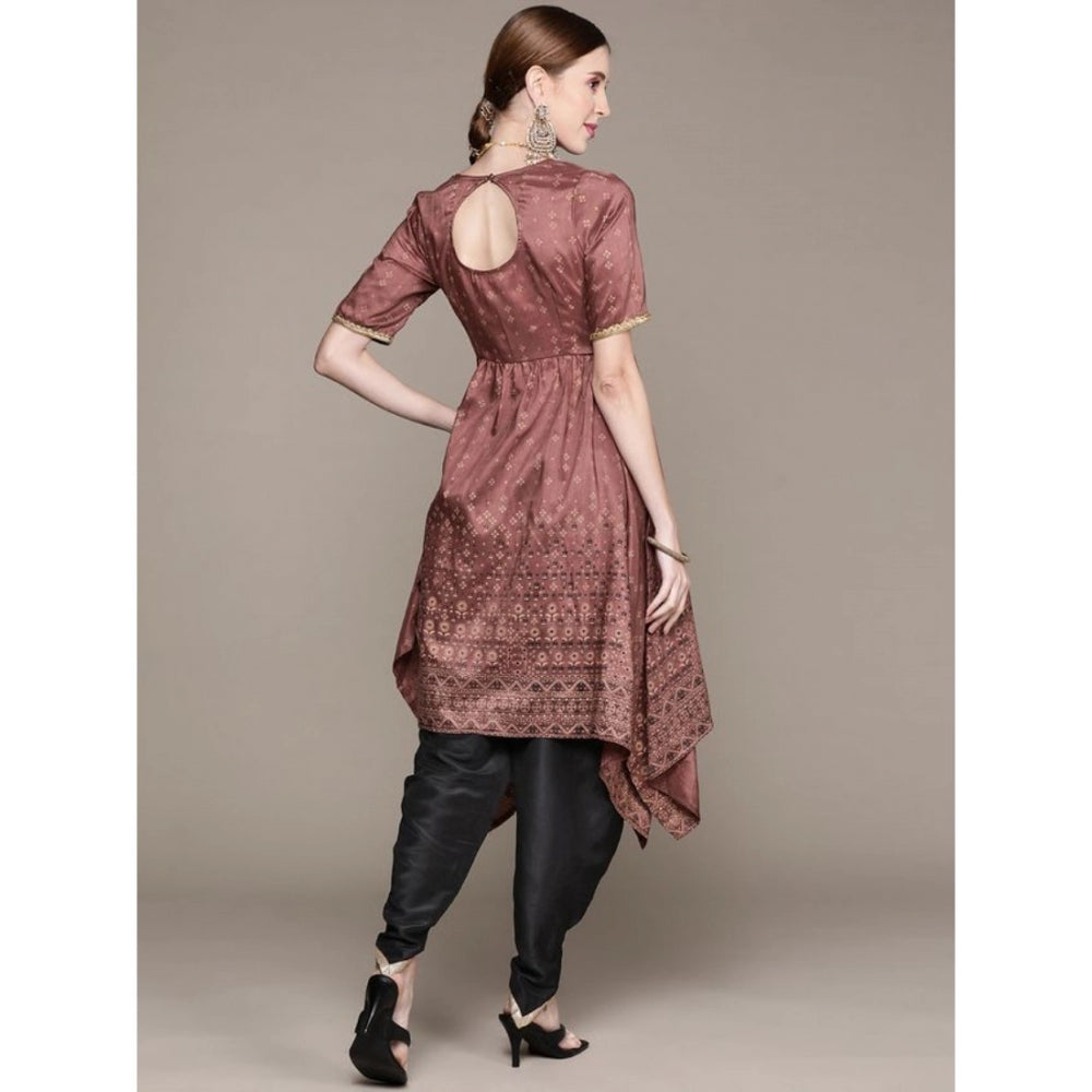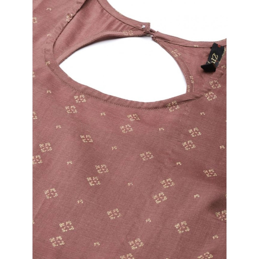 Amfyn Women's Casual Half Sleeve Floral Printed Chinon Kurti And Dhoti Pant Set (Brown)