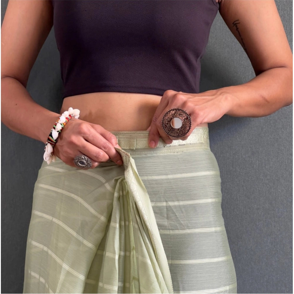 Amfyn Women's Chiffon Striped Ready to wear Saree With Unstitched Blouse 5.5 Mtr (Pista )