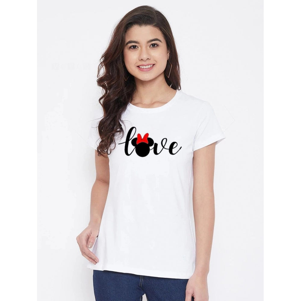 Amfyn Women's Cotton Blend Love Printed T-Shirt (White)