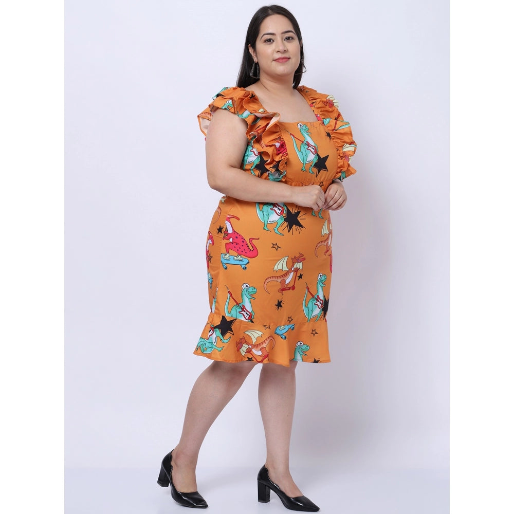 Amfyn Women's Crepe Printed Knee Length Fit and Flare Dress (Multicolor)