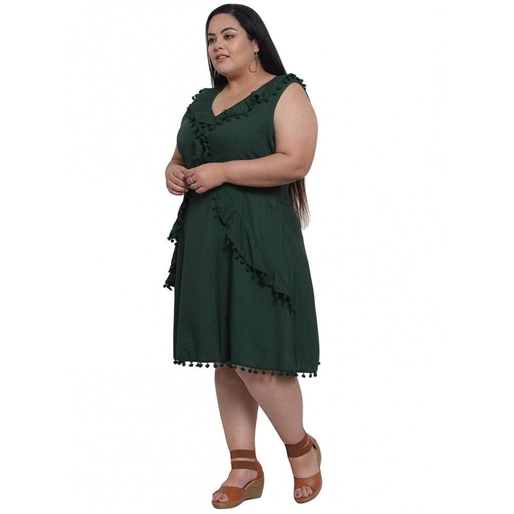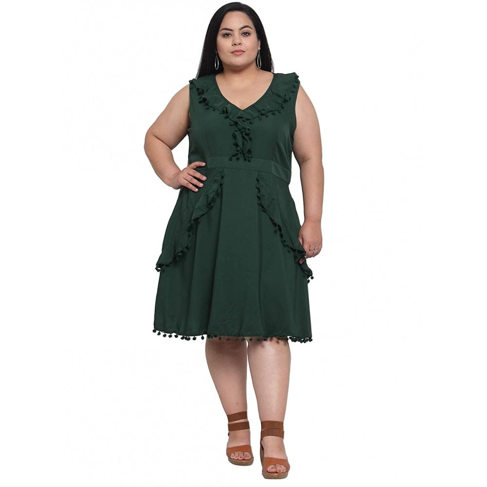 Women's Crepe Solid Knee Length Fit and Flare Dress (Botal Green)