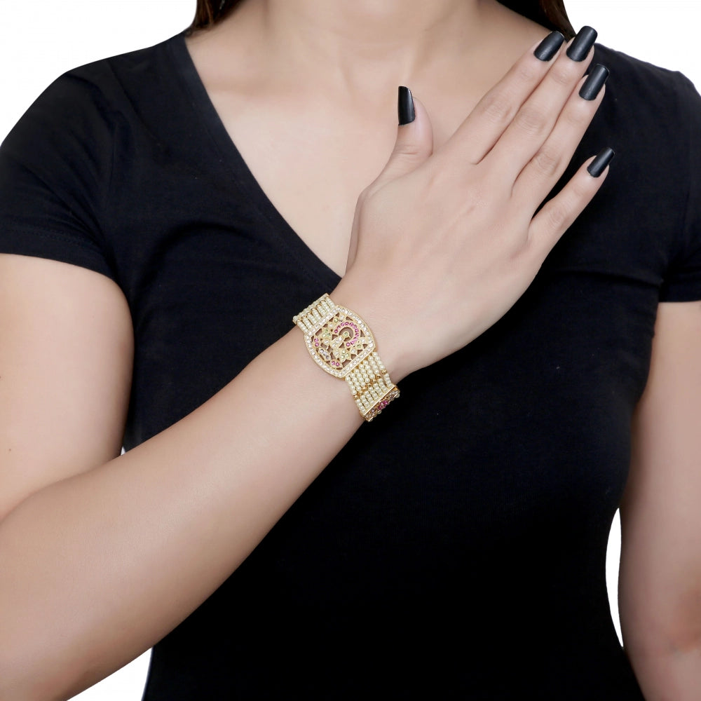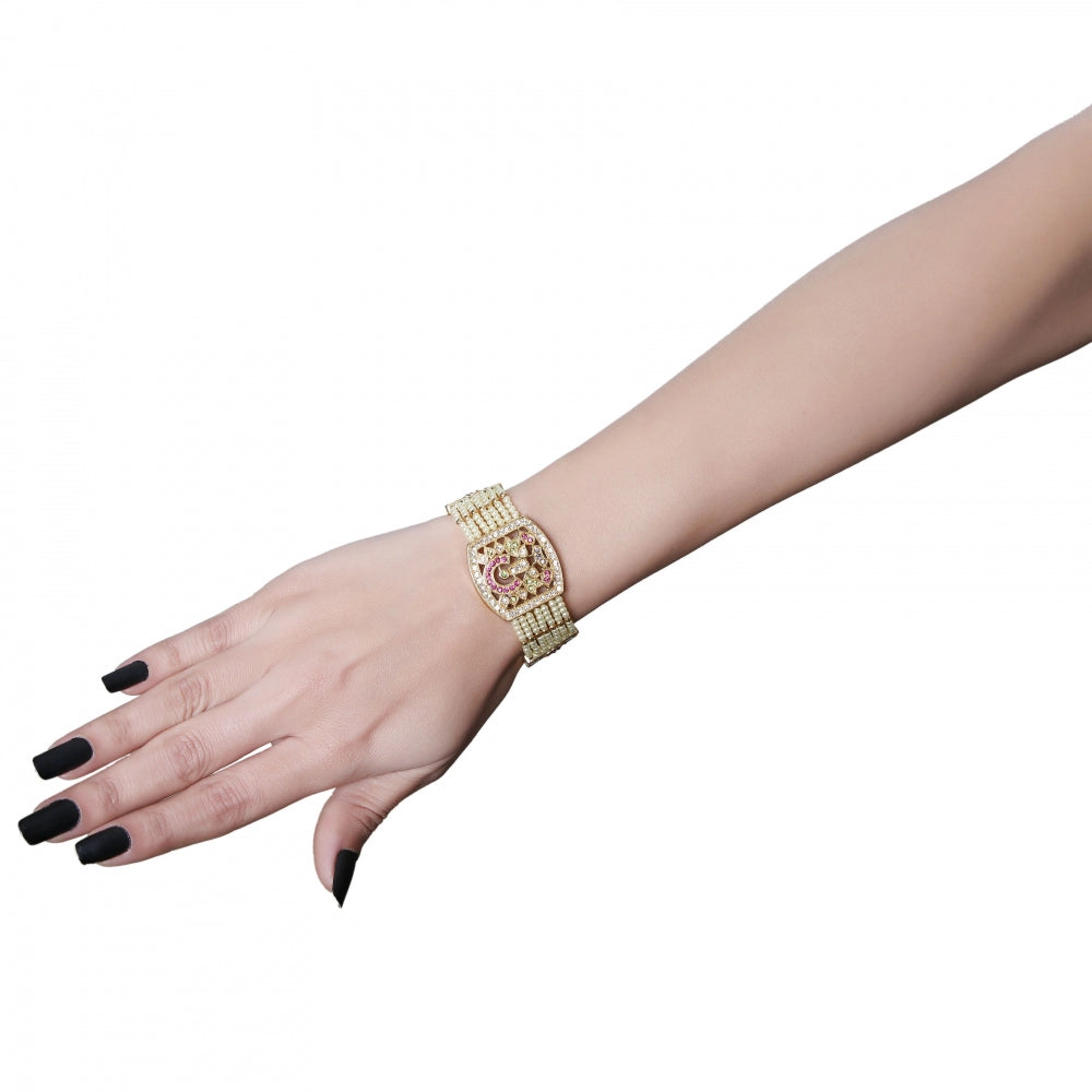 Fashion Women's Gold Plated Jadau Stone Bracelet-Golden,