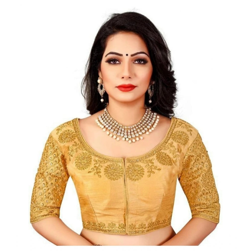 Amfyn Women's Half Sleeve Ultra satin Readymade Blouse (Beige, Free Size: Up To 34 Inch)