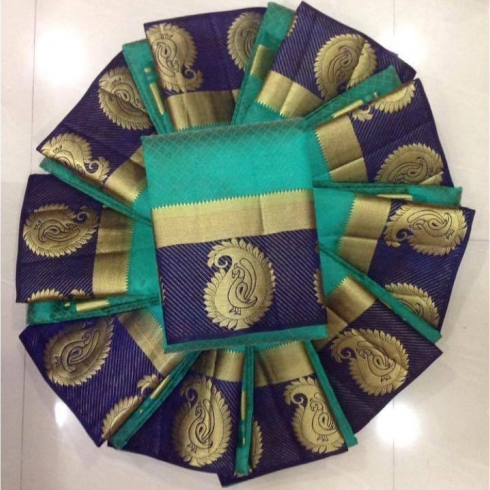 Amfyn Women's Kanjivaram Silk Saree With Unstitched Blouse Piece (Turquoise Green, 5-6 Mtrs)