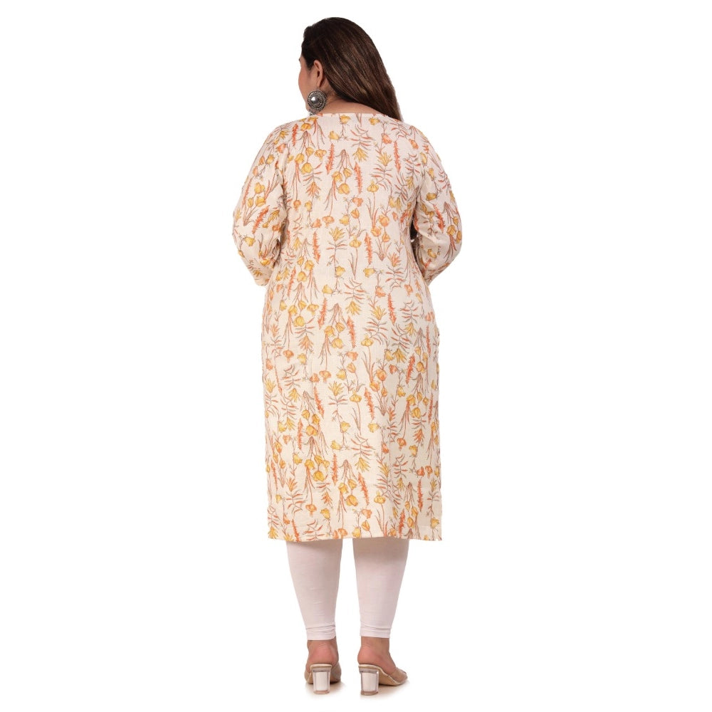Amfyn Women's Office wear Floral Printed Capsule Straight Kurti (Orange)