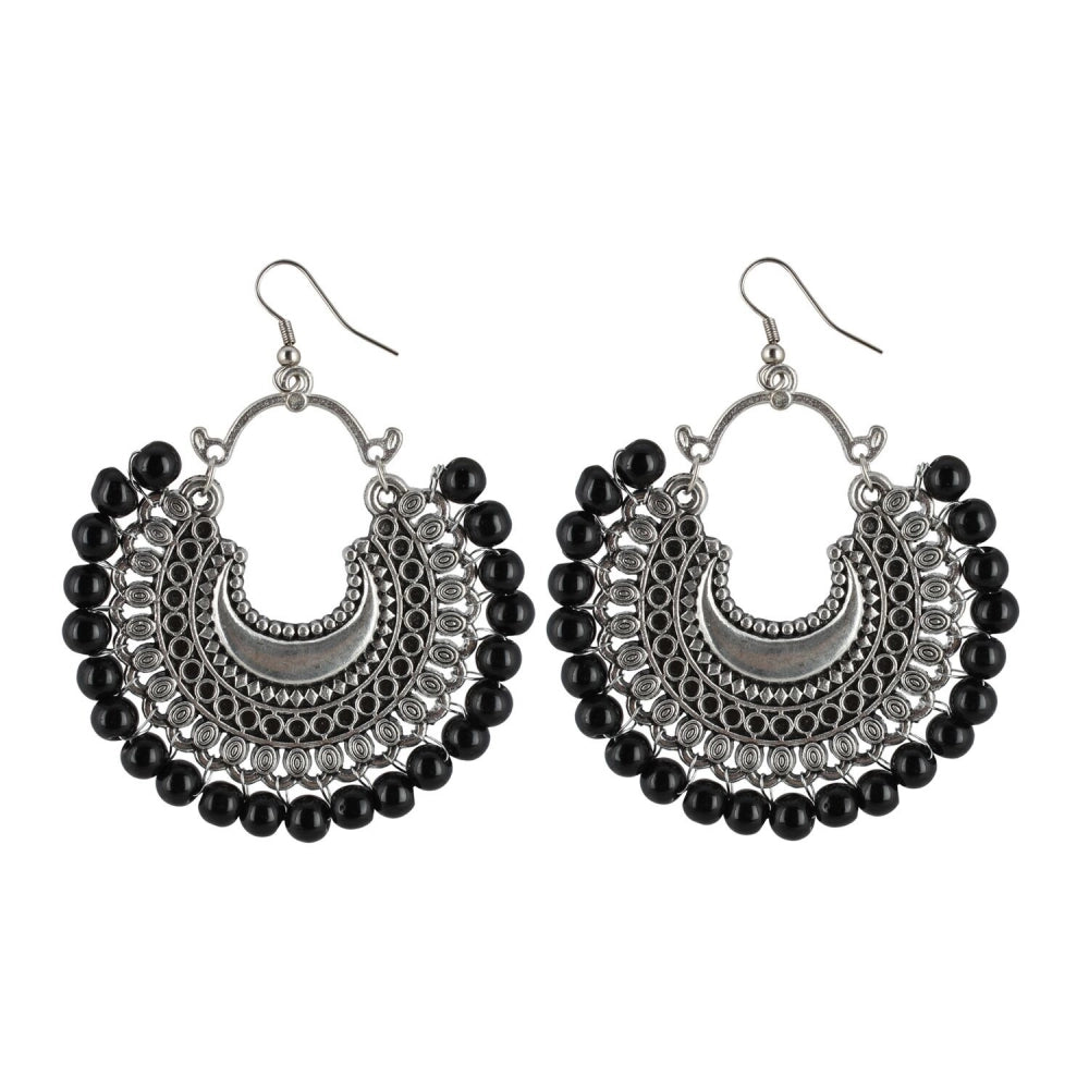 Fashion Women's Onyx Stone, Silver plated Hook Dangler Hanging Fashion Earring