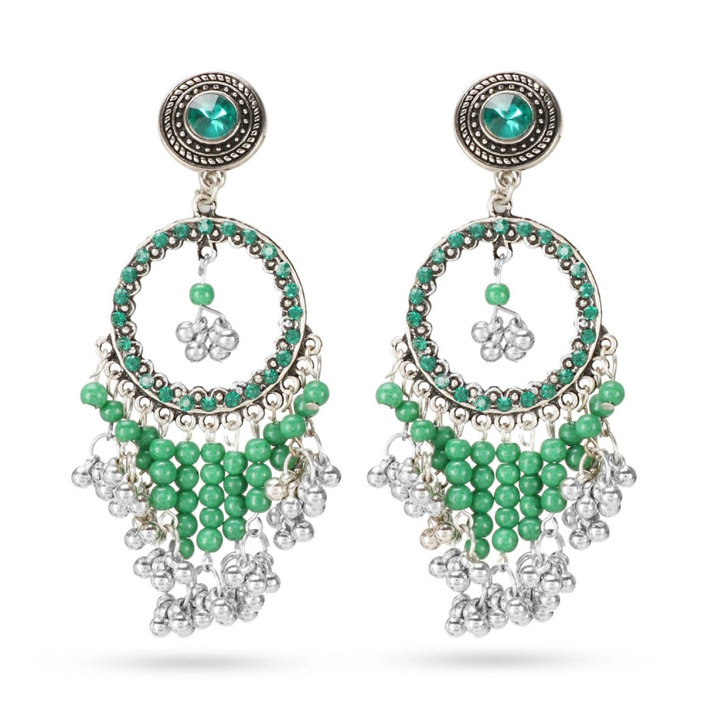 Fashion Women's Oxidized Silver plated Hook Dangler Hanging Earrings-Green,