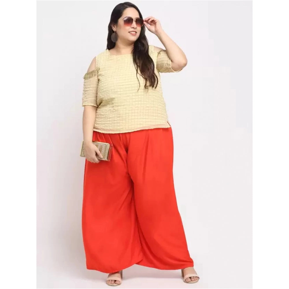 Amfyn Women's Plus Size Flared Fit Viscose Rayon Palazzo Trousers (Red)