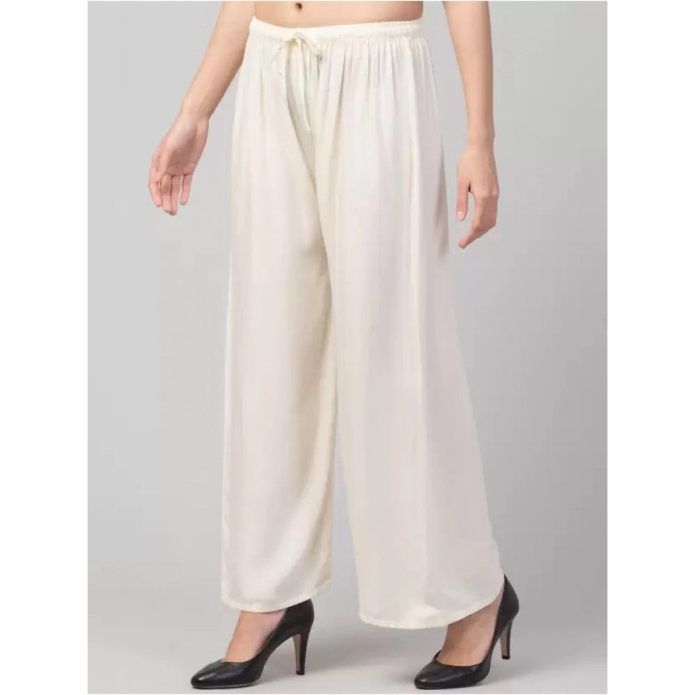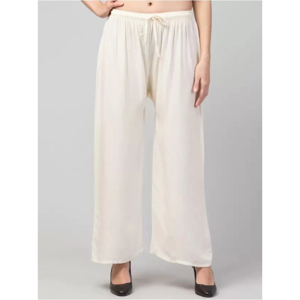 Amfyn Women's Plus Size Relaxed Fit Viscose Rayon Palazzo Trousers (Cream)