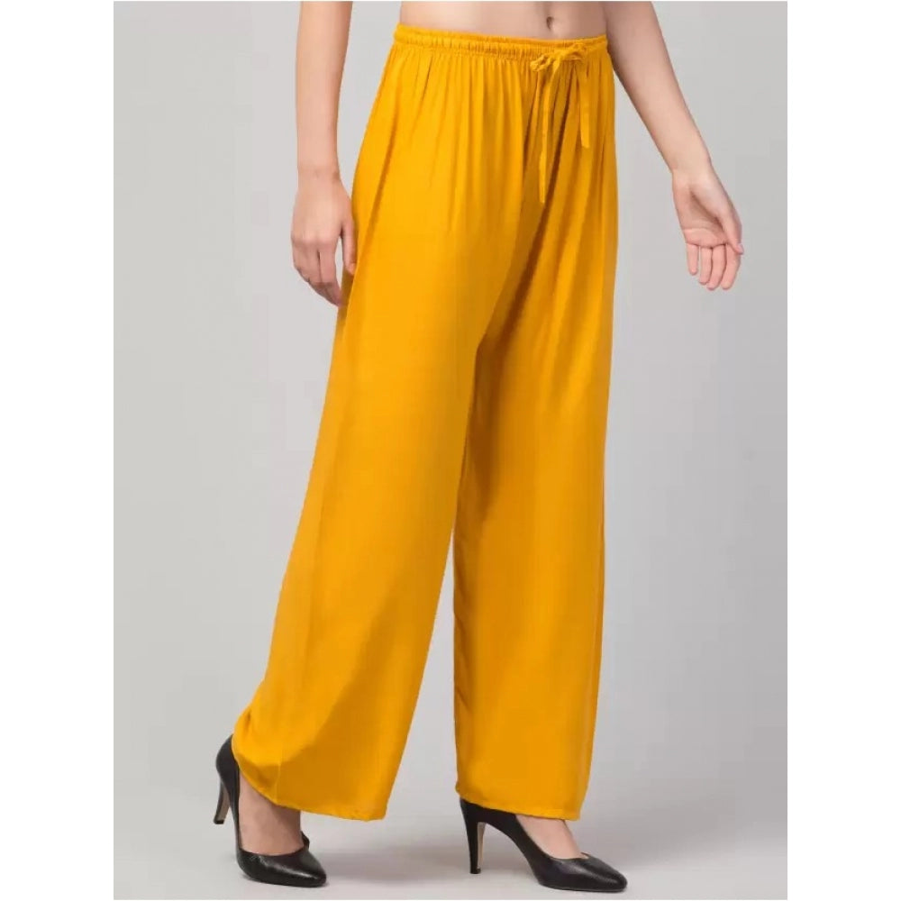 Amfyn Women's Plus Size Relaxed Fit Viscose Rayon Palazzo Trousers (Yellow)