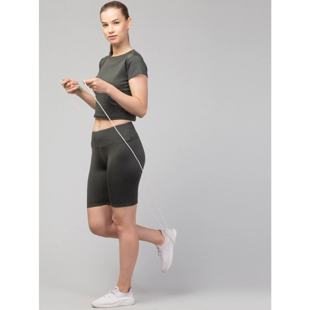 Amfyn Women's Polyester Solid Above Knee High-Rise Shorts (Green)