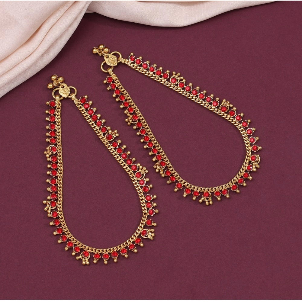 Fashion Women's Red Color Anklets (Free Size: Upto 10")