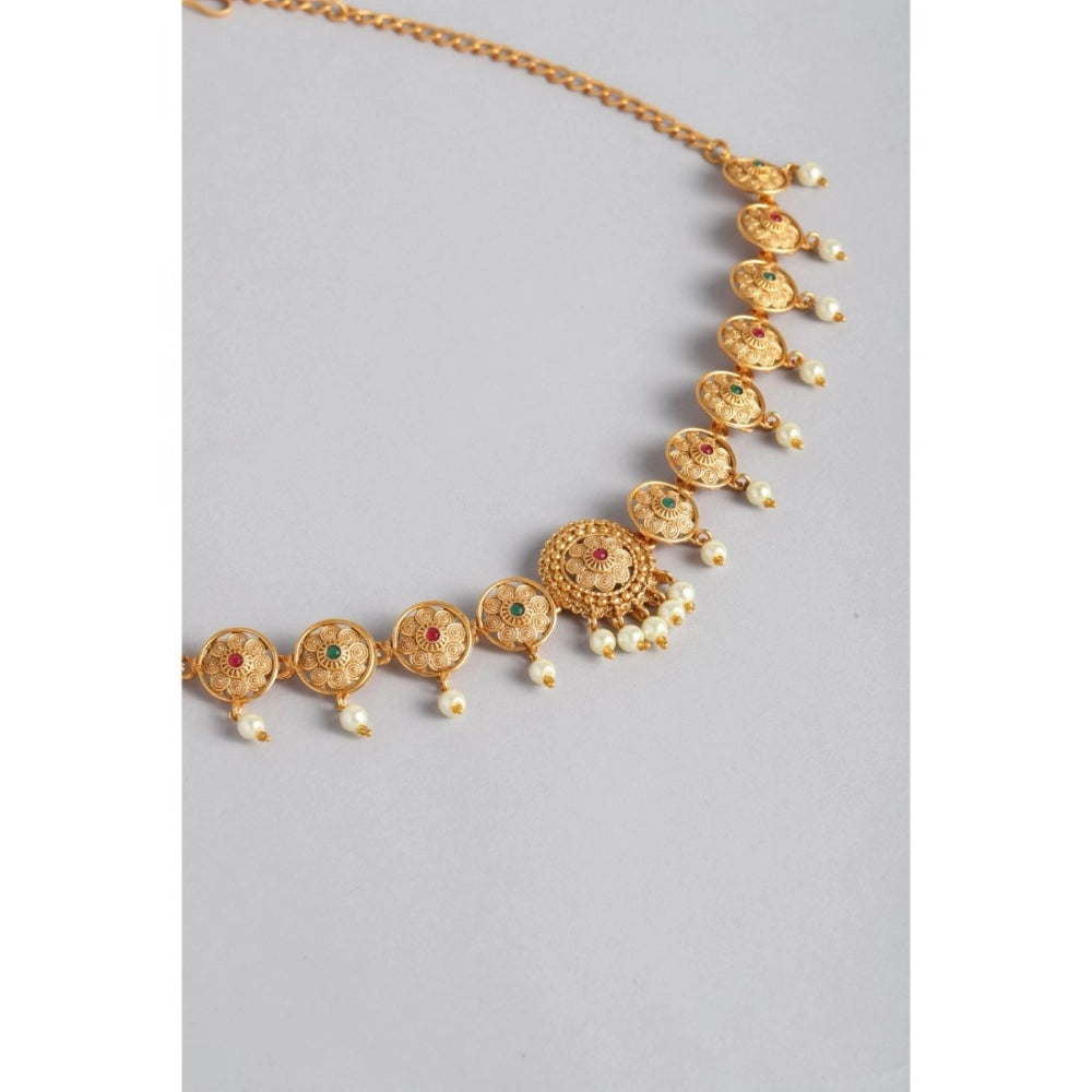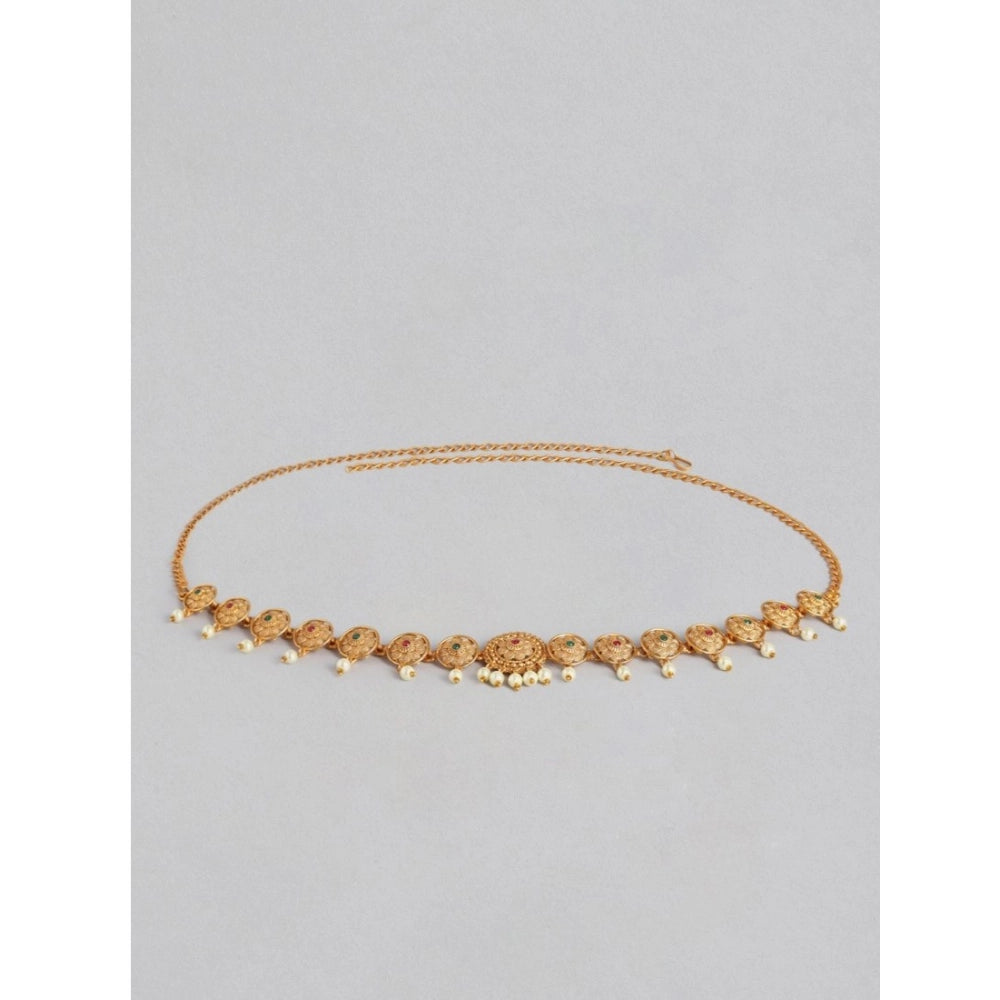 Amfyn Women's Rose Gold Plated Alloy Hip Belt Kamarband (Red & Green)
