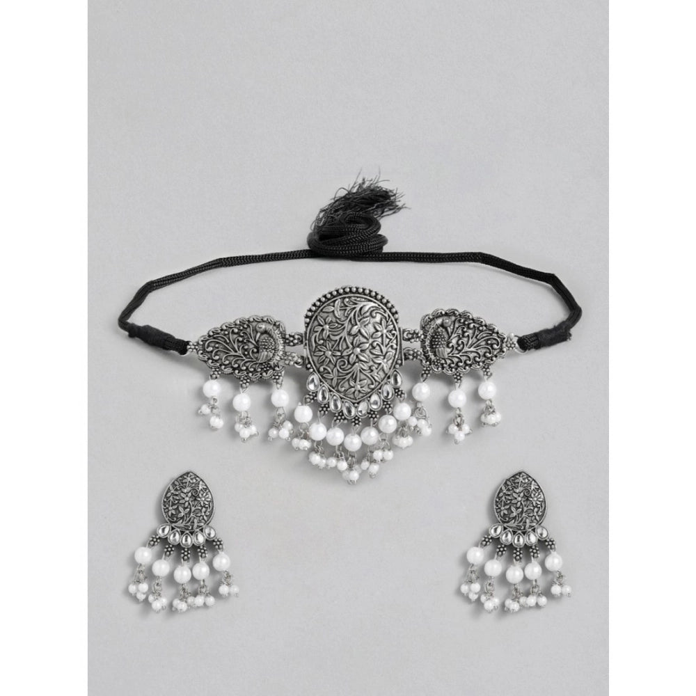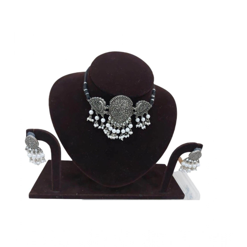 Amfyn Women's Rose Gold Plated Alloy Necklace & Earings Set (Silver)