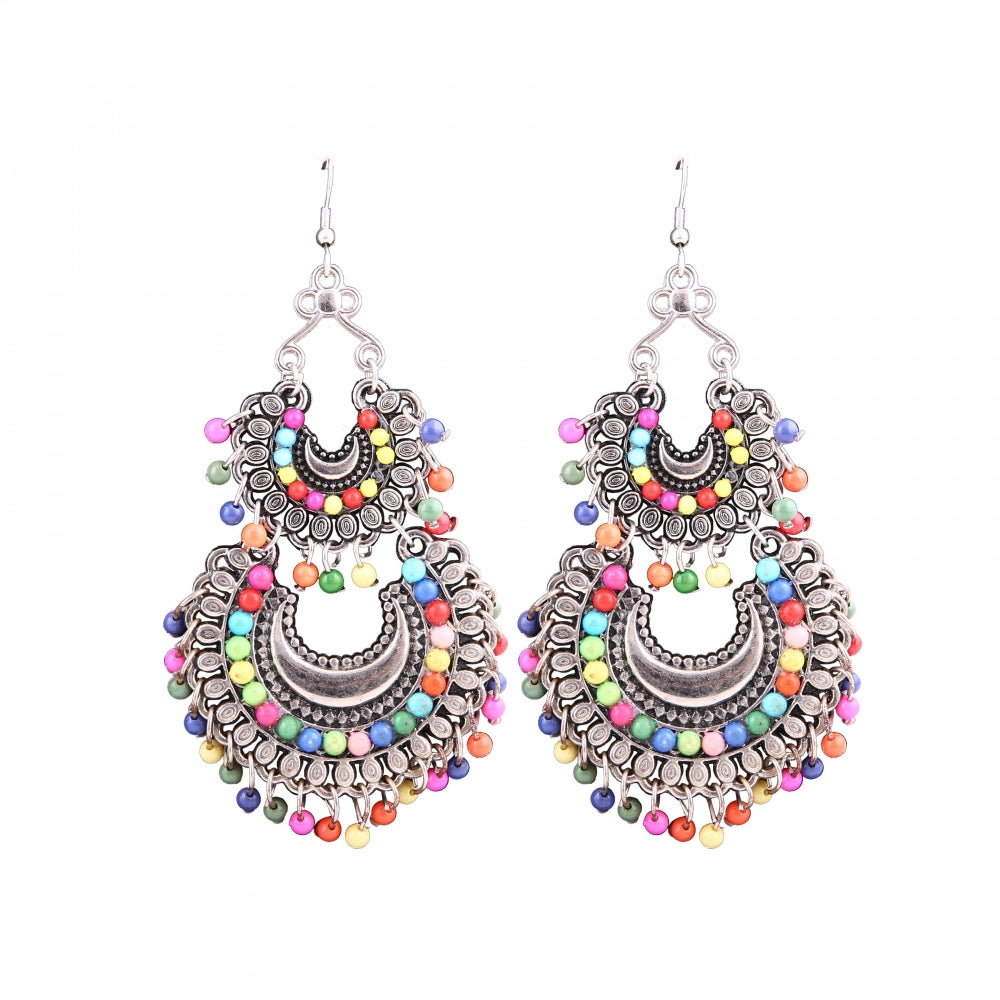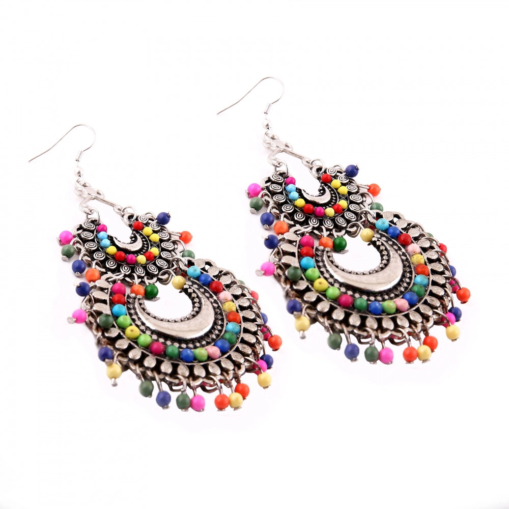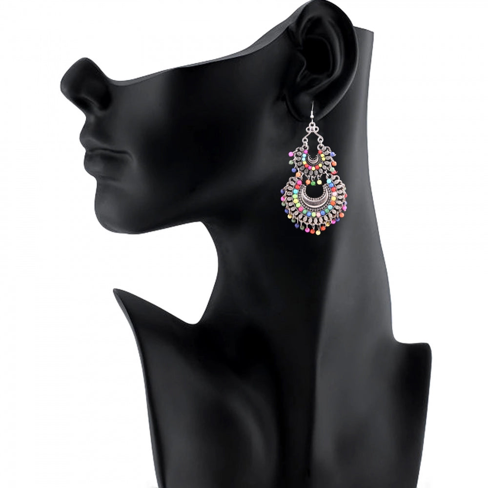 Fashion Women's Silver Oxidized Hook Dangler Hanging Afgani Tribal Fancy Earrings-Silver,