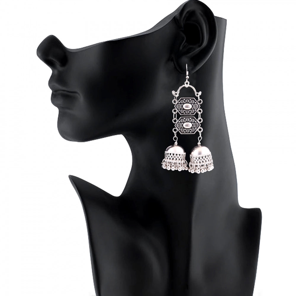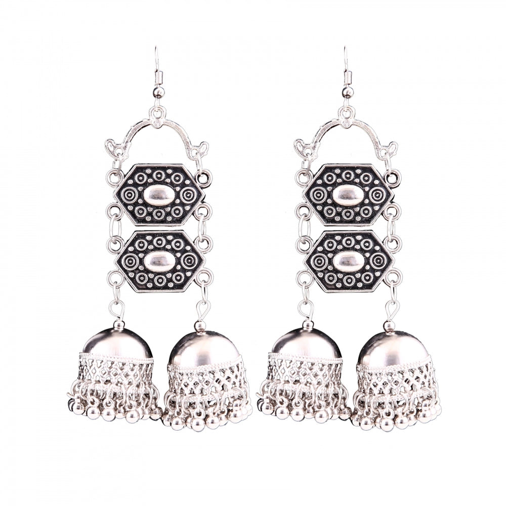 Fashion Women's Silver Oxidized Hook Dangler Hanging Afgani Tribal Fancy Earrings-Silver