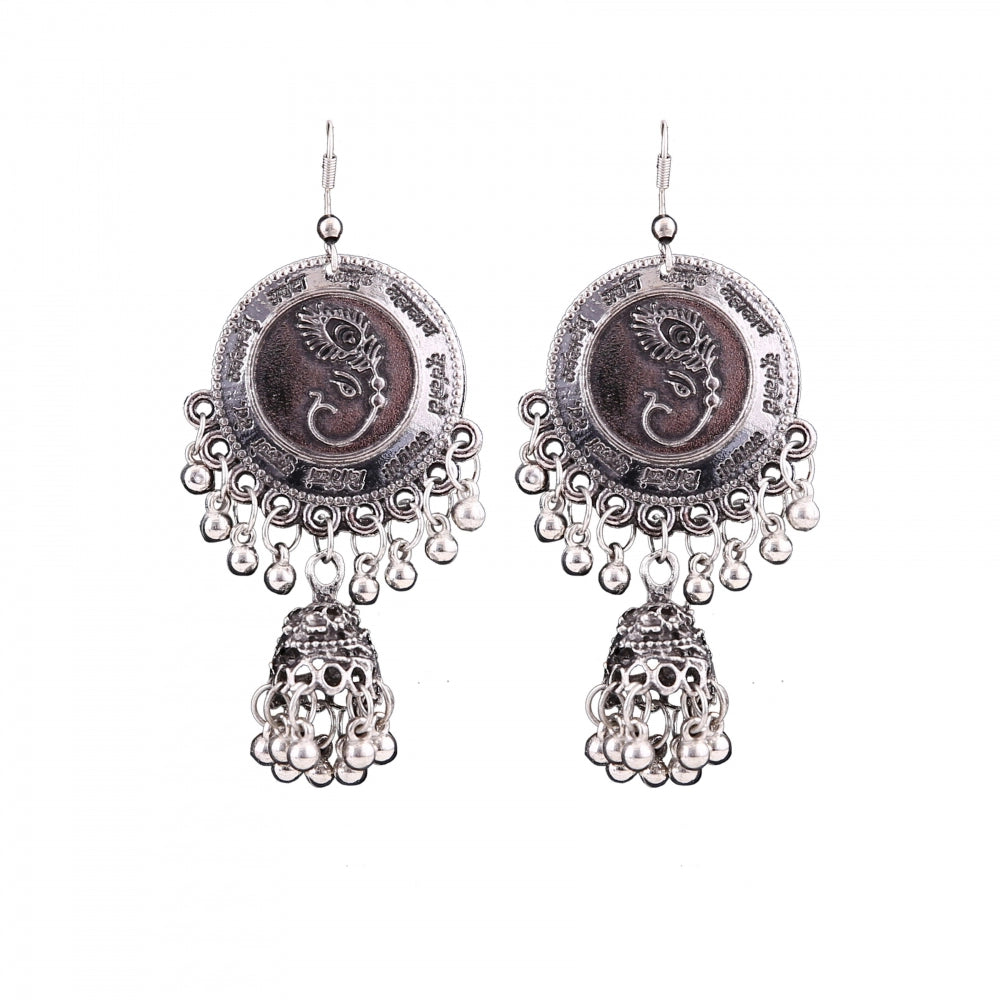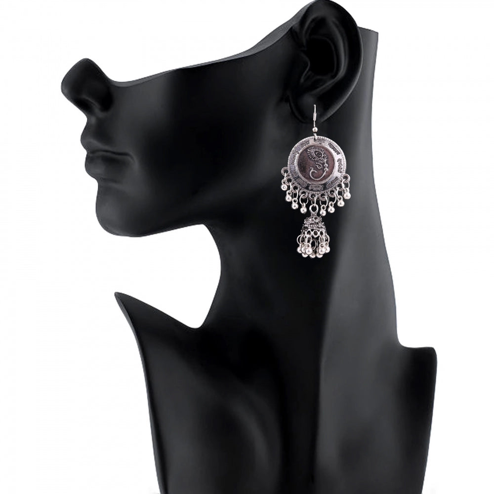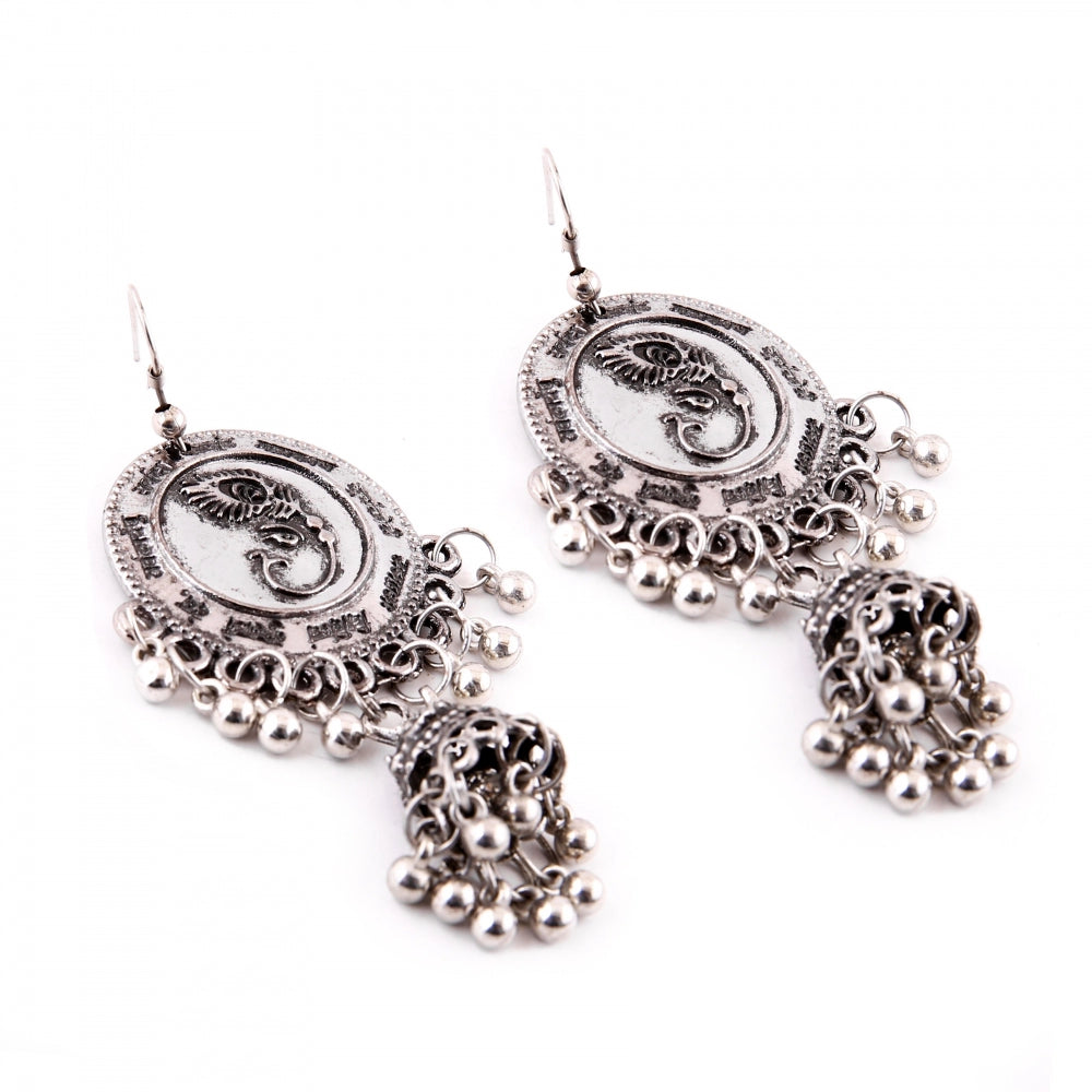 Fashion Women's Silver Oxidized Hook Dangler Hanging Afgani Tribal Fancy Earrings-Silver