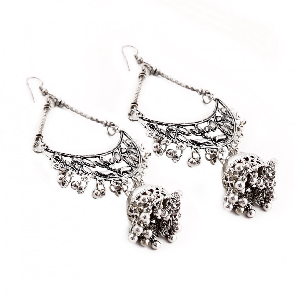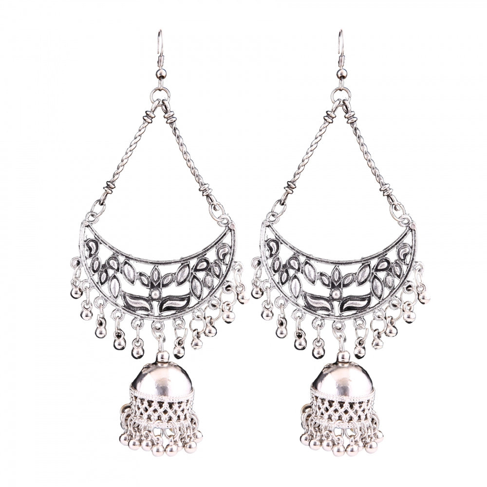 Fashion Women's Silver Oxidized Hook Dangler Hanging Afgani Tribal Fancy Earrings-Silver