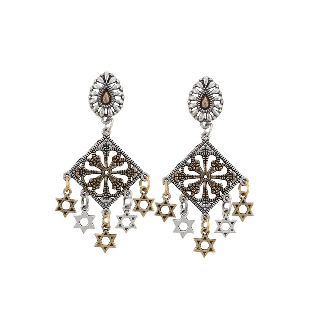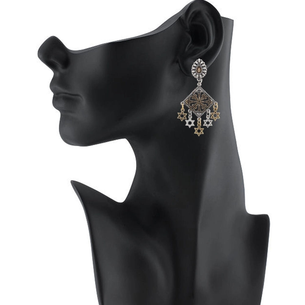 Fashion Women's Silver Plated Hook Dangler Hanging Earrings-Gold