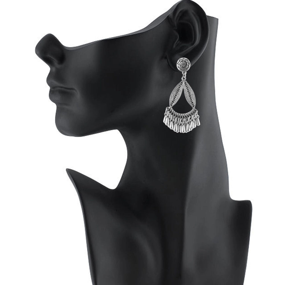 Fashion Women's Silver Plated Hook Dangler Hanging Earrings-Silver