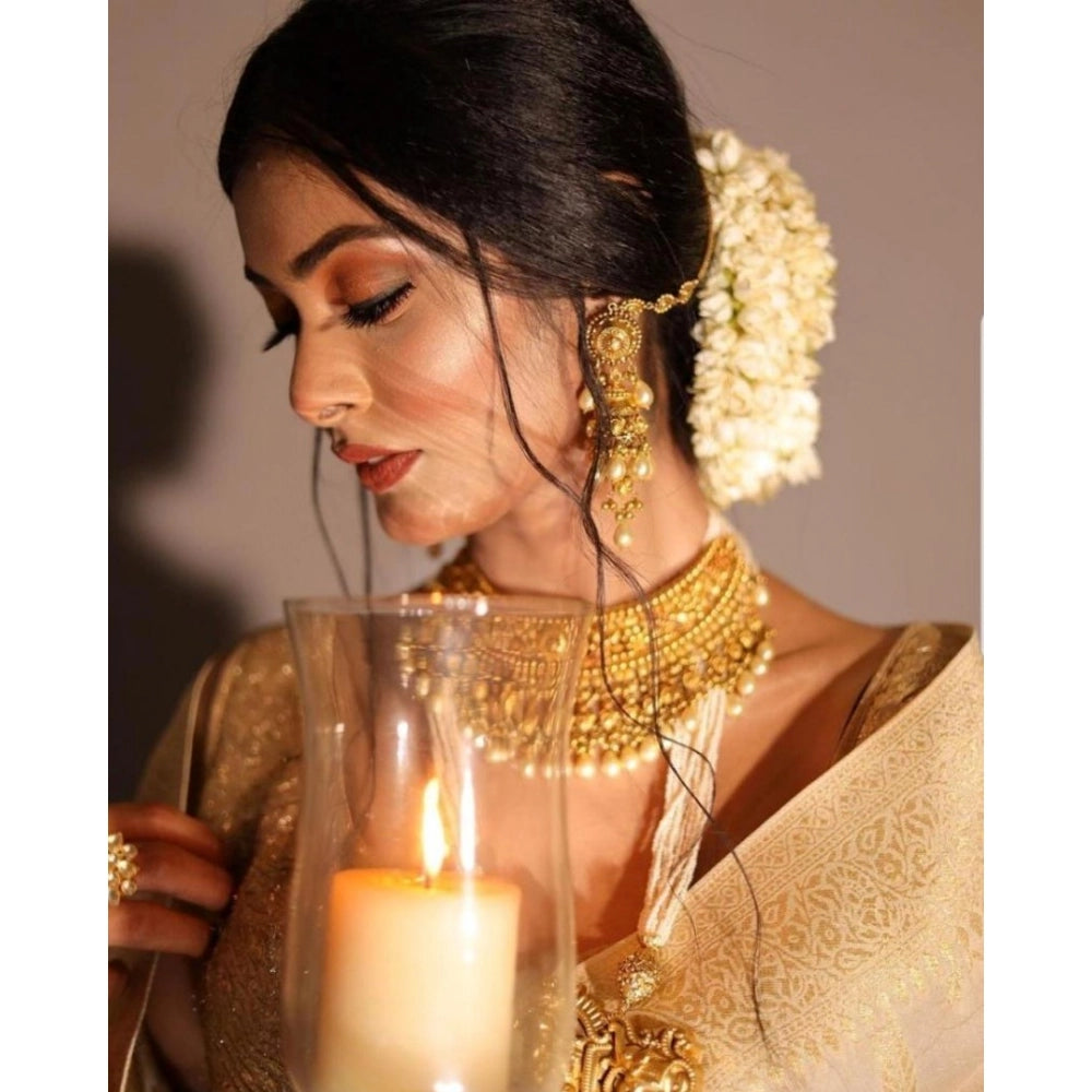 Amfyn Women's Soft Lichi Silk Printed Saree With Unstitched Blouse 5.5Mtr (Golden)