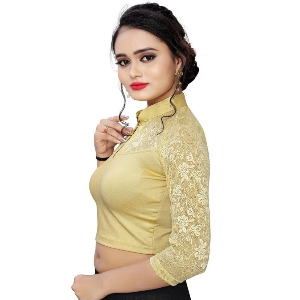 Women's Stretchable Readymade Blouse Cotton Lycra (Size-Free Size ,Neck Type- Collar)
